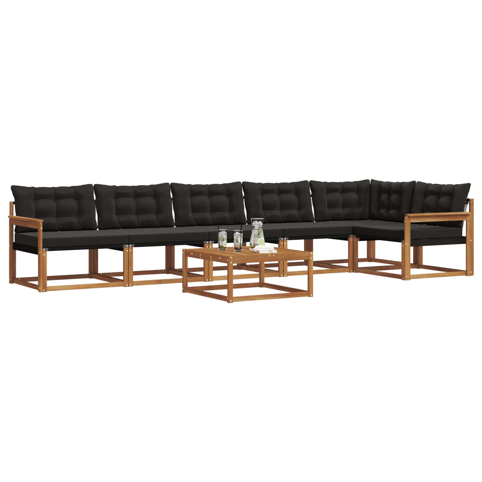 Ta zunanji pohištveni komplet združuje stil in praktičnost ter ponuja osupljivo središče za vsak vrt ali teraso. Njegova moderna zasnova s čistimi linijami in minimalnimi detajli doda eleganco, hkrati pa omogoča sproščanje na prostem in družabne dogodke. Akacijev les zagotavlja trajnost in lepo estetiko, kar ga naredi idealno izbiro za vse, ki iščejo funkcionalnost in eleganco v zunanjem pohištvu. Vzdržljiv trden akacijev les: Ta zunanji pohištveni komplet, izdelan iz trdnega akacijevega lesa, se ponaša z dolgotrajnostjo in odpornostjo na zunanje vplive. Njegova trdna konstrukcija nudi stabilnost in zanesljivo podporo, pri tem pa toplina naravnega tona izboljša videz vašega vrta ali terase. Vremensko odporna zasnova: Ta komplet ima zaščitno lakirano površino, ki ščiti pred soncem, blagim dežjem in drugimi zunanjimi vplivi. Poliran zaključek ohranja videz in funkcionalnost ter zagotavlja dolgo življenjsko dobo za vašo teraso, vrt ali dvorišče. Komponente in zasnova: Vsak del, od naslonov do sedežne površine, je zasnovan za udobje in slog. Podporne lastnosti zagotavljajo dodatno udobje, medtem ko kohezivna zasnova ustvari vizualno usklajen set, primeren za različne zunanje priložnosti. Udobje in prilagodljivost: Modularna zasnova omogoča različne konfiguracije, primerne za vsak prostor in potrebe. Odlična je za sprostitev, druženja ali mirne trenutke s knjigo, saj se ta komplet enostavno prilagodi vsakemu zunanjemu okolju. Enostavno vzdrževanje: Da bo pohištvo dolgo v dobrem stanju, ga obrišite z vlažno krpo in se izogibajte ostrim čistilom. Redno vzdrževanje ohranja njegov videz in podaljšuje življenjsko dobo pohištva.