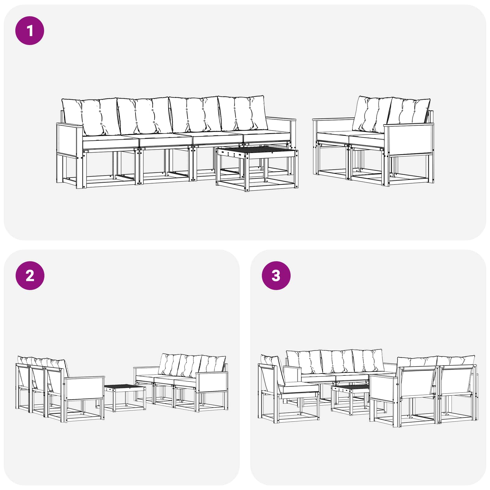 - 6 x Srednji kavč: 59 x 63 x 73 cm (D x Š x V)
