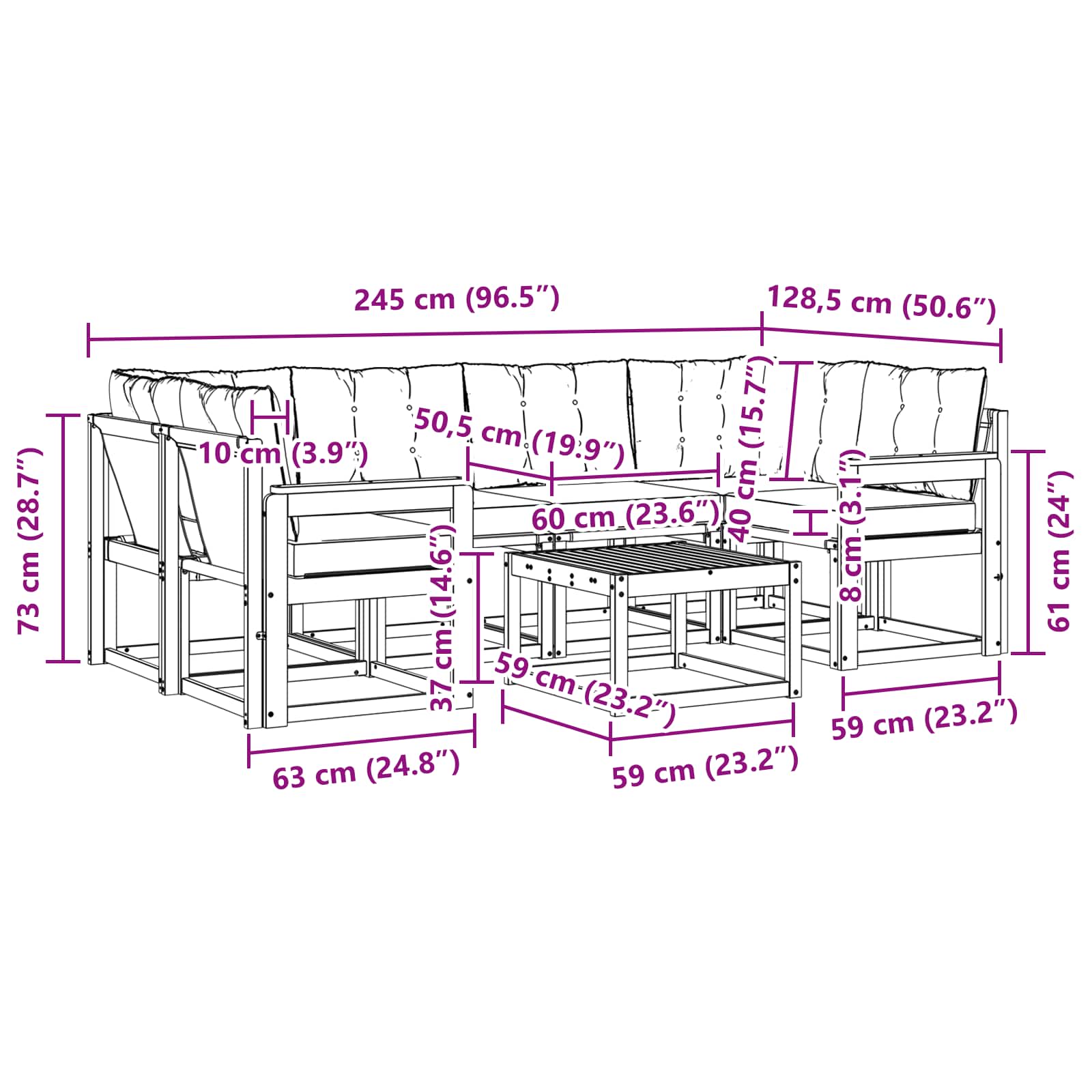 - 4 x Sedežna blazina: 60 x 50,5 x 8 cm (DxŠxV)