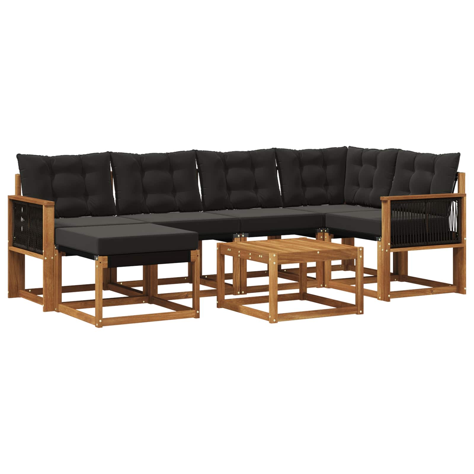 Ta set kavčev prenavlja tvoje zunanje sproščanje s hitrimi linijami, minimalističnim stilom in funkcionalno eleganco. Idealen za vrt, teraso ali obrežje bazena, ta set združuje preprostost in šik stil. Njegove teksturirane površine in dizajni so resne izbire, ki dajejo brezčasen videz, hkrati pa zagotavljajo praktičnost pri vsakodnevni uporabi na prostem. Kakovostni materiali : Set je iz vrhunskega trdnega akacijevega lesa in tekstila, ki sta izbrana zaradi svoje trdnosti in stilske privlačnosti. Les nudi čudovito teksturo, kar dodaja toplino, tekstil pa je vremensko odporen, kar zagotavlja dolgotrajno sedenje. Kompletni elementi : Ta set vključuje udobno oblikovane komponente, kot so trdna naslonjala in opora za hrbet, ki prinašajo dodatno udobje. Sedenje iz tekstila je enostavno za vzdrževanje in odporna proti obrabi. Napredna funkcionalnost : Uživaj v sproščanju na debelo oblazinjenem kavču, ki je res udoben za dolga sedenja. Praktična naslonjala in letvasta miza omogočajo hitro odtekanje in funkcionalnost za zunanjo uporabo. Vsestranska uporaba : Ta set kavčev se čudovito prilega različnim zunanjim okoljem, od vrtov po terase do dvorišč ali obrežij bazenov. Ne glede na to, ali prirejaš zabavo ali uživaš v tihem popoldnevu, ta set podpira vse tvoje zunanje aktivnosti. Enostavno vzdrževanje : Vzdrževanje tega super seta je res enostavno — samo ga obriši z vlažno krpo, da ohraniš čistočo. Zmanjšaj obrabo z občasnim čiščenjem, da ohraniš les svež skozi vse letne čase.