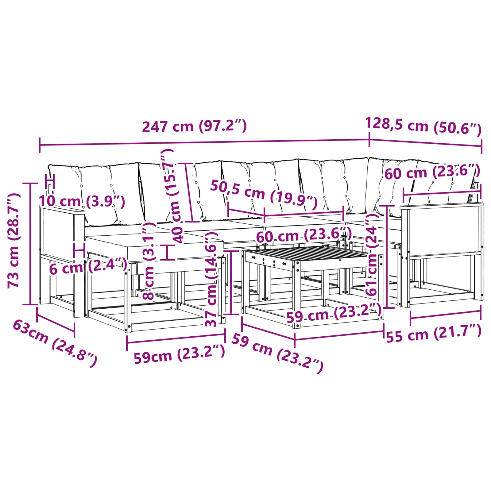 - 4 x Sedežna blazina: 60 x 50,5 x 8 cm (D x Š x T)