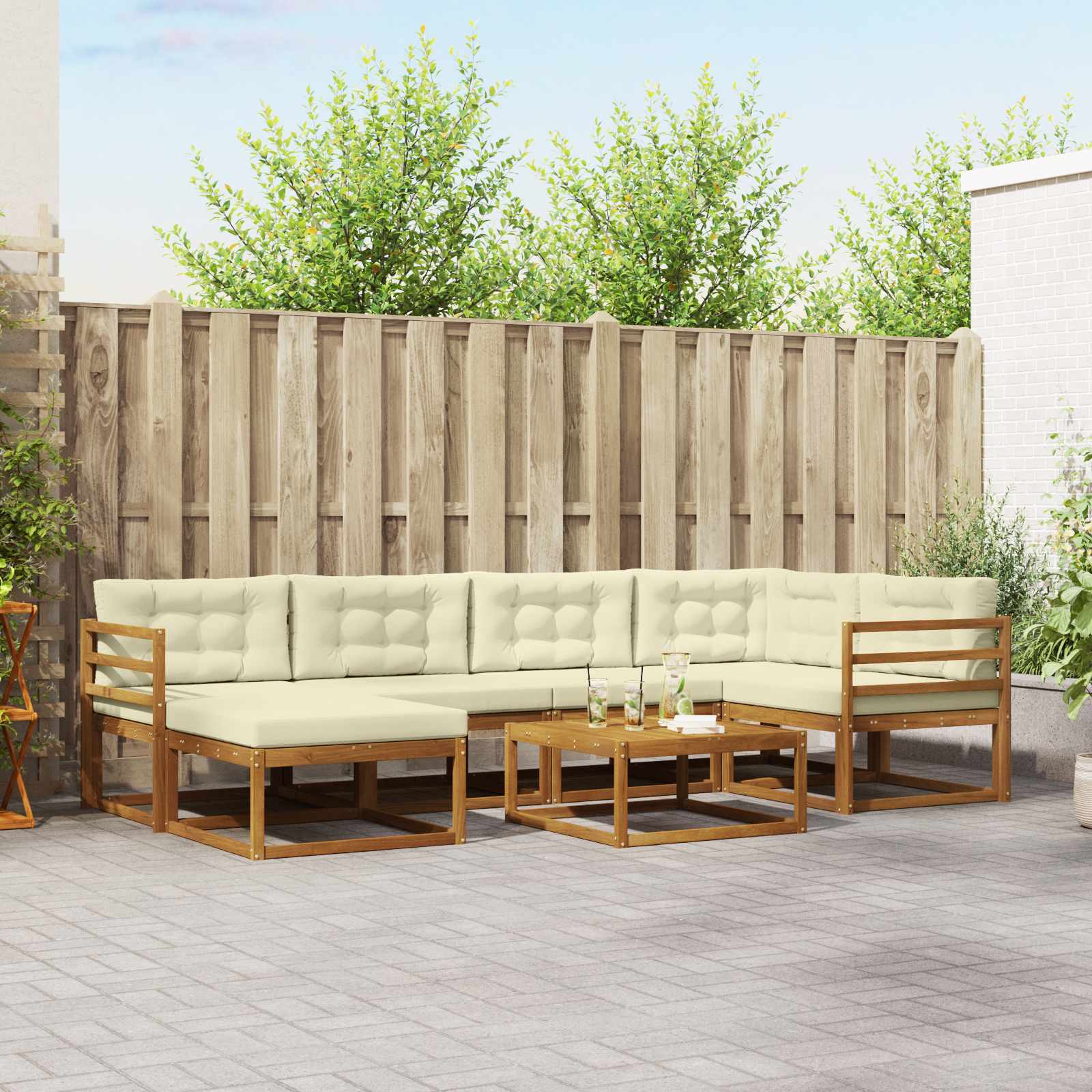 Ta zunanja vogalna sedežna garnitura ima moderno estetiko in preprosto funkcionalnost, kar jo naredi idealno za vsak vrt, teraso, dvorišče ali bazen. Oblikovana za udobje in prilagodljivost, je modularna, kar pomeni, da jo lahko reorganiziraš za različne dogodke ali mirne trenutke. Vsaka enota ima čiste linije in minimalno okrasitev, kar ustvari prijeten prostor za sprostitev. Ta niz se odlično ujema z različnimi zunanjimi dekoracijami in bo postal osrednji element vsakega stilskega zunanjega okolja. Materiali: Zgrajena iz trpežnega akacijevega lesa, ki je znan po svoji dolgi življenjski dobi. Material prenese vremenske vplive, kar omogoča dolgotrajno rabo na prostem. Njegova fina zrna in globoka rjava barva dodajata eleganco in toplino zunanjim prostorom, ne da bi ogrozila robustnost. Enostavno ga je čistiti, kar ohranja izvirno teksturo in privlačnost skozi čas. Vključene komponente: Ta set vključuje trdno letvičasto strukturo, ki nudi stabilnost in udobje. Letvičasti hrbtni del in naslonjali iz akacije se bomo odlično ujeli v celotno zasnovo in dodali udobje ter vizualno harmonijo. Vsaka komponenta vam nudi funkcionalno podporo in udobylje v vašem vrtu ali ob bazenu. Lastnosti / Funkcija / Zasnova: Ta sedežna garnitura je zasnovana s praktičnostjo in modularnostjo, kar omogoča prilagodljivo postavitev za različne potrebe. Njena letvičasta zasnova nudi udobje in zračen prostor, medtem ko hrbtni del zagotavlja dobro držo pri sedenju. Sodobna estetika se spoji s funkcionalnostjo in ustvari sproščujoče območje na prostem. Priporočena raba: Odlična je za vrtove, terase, dvorišča ali ob bazenih, nudi udobno sedenje za družinske piknike, popoldansko čajanko ali mirne trenutke sami. Njena prilagodljivost jo dela za brezčasno izbiro pri zunanji dekoraciji doma. Vzdrževanje: Z ustreznim vzdrževanjem lahko podaljšate življenjsko dobo niza. Redno ga brišite z vlažno krpo in se izogibajte dolgotrajni izpostavljenosti soncu. Uporabite zaščitne prevleke v slabem vremenu, da ohranite njegovo privlačnost in funkcionalnost. Tak pristop zagotavlja, da ostane pohištvo lahko privlačen dodatek vašemu zunanjemu prostoru.