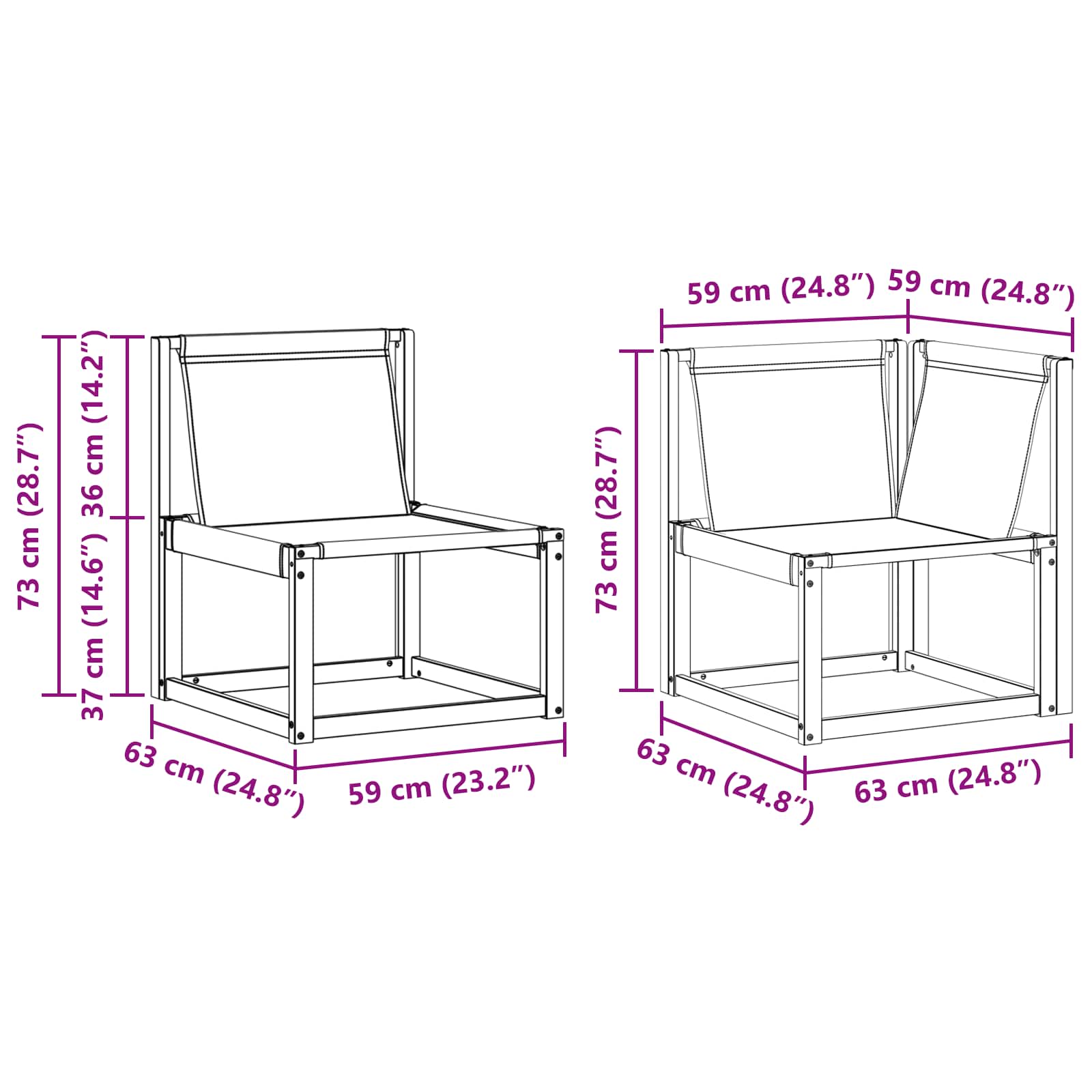 - 2 x Kotna sedežna: 63 x 63 x 73 cm (D x Š x V)