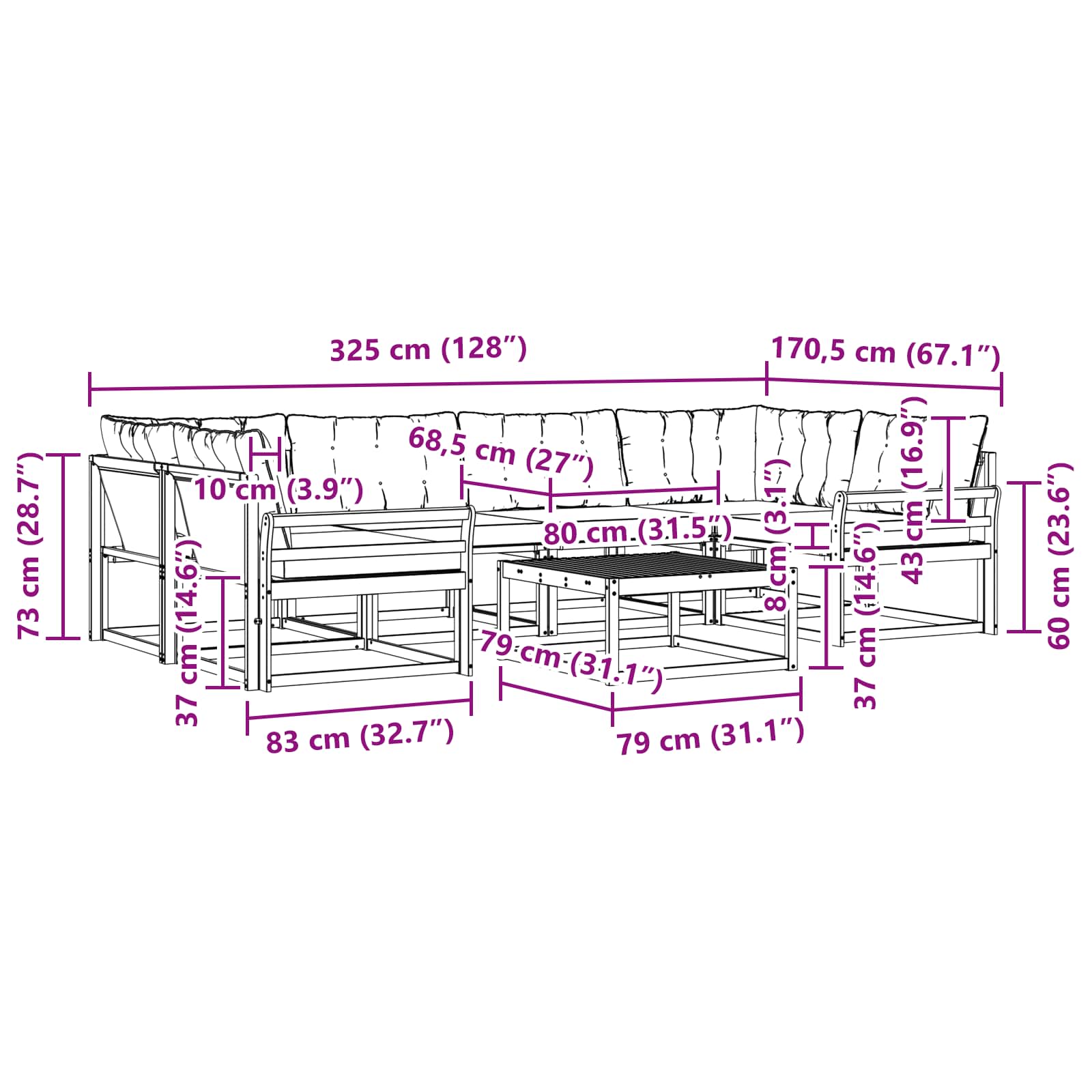 - 8 x Naslonna blazina: 80 x 43 x 10 cm (DxŠxV)