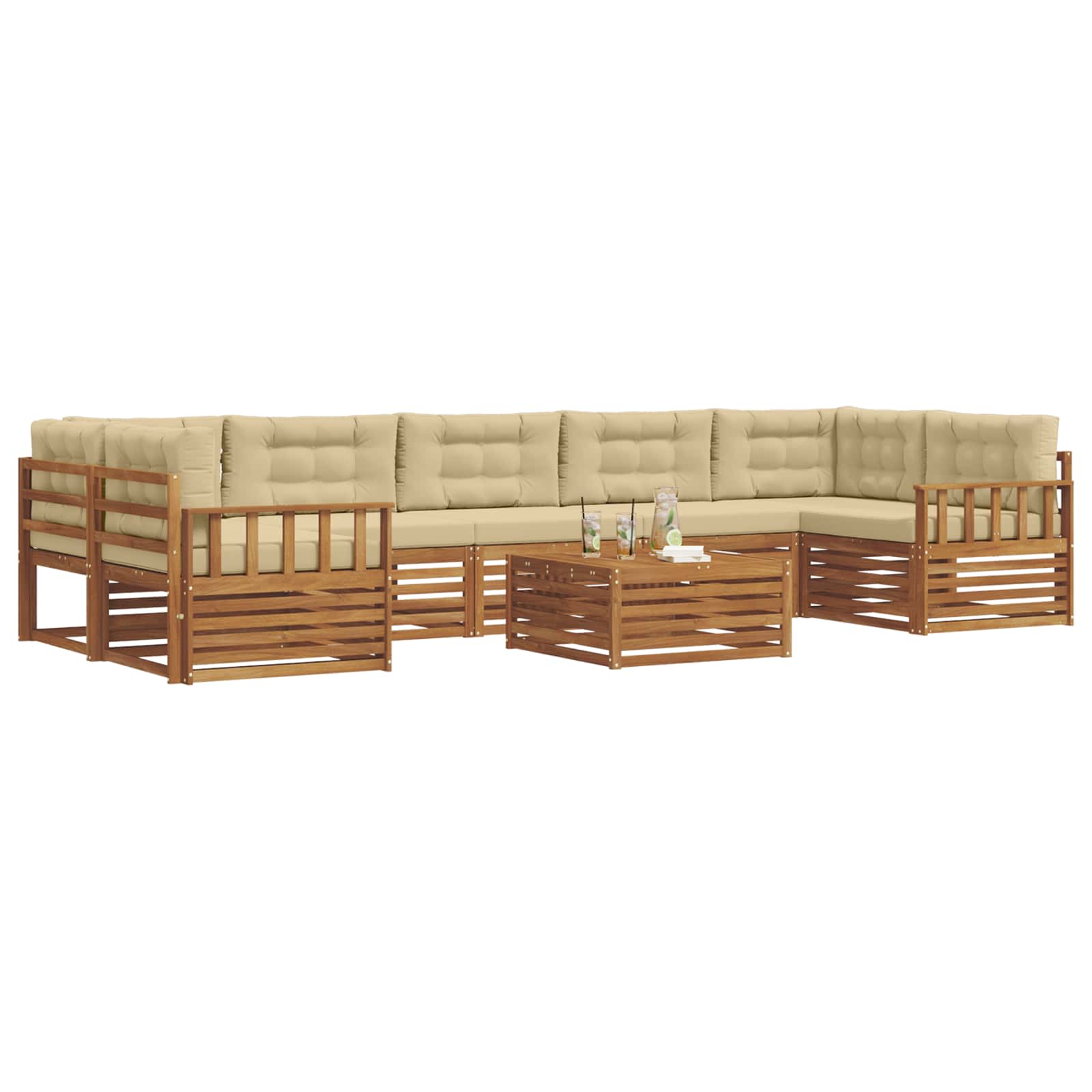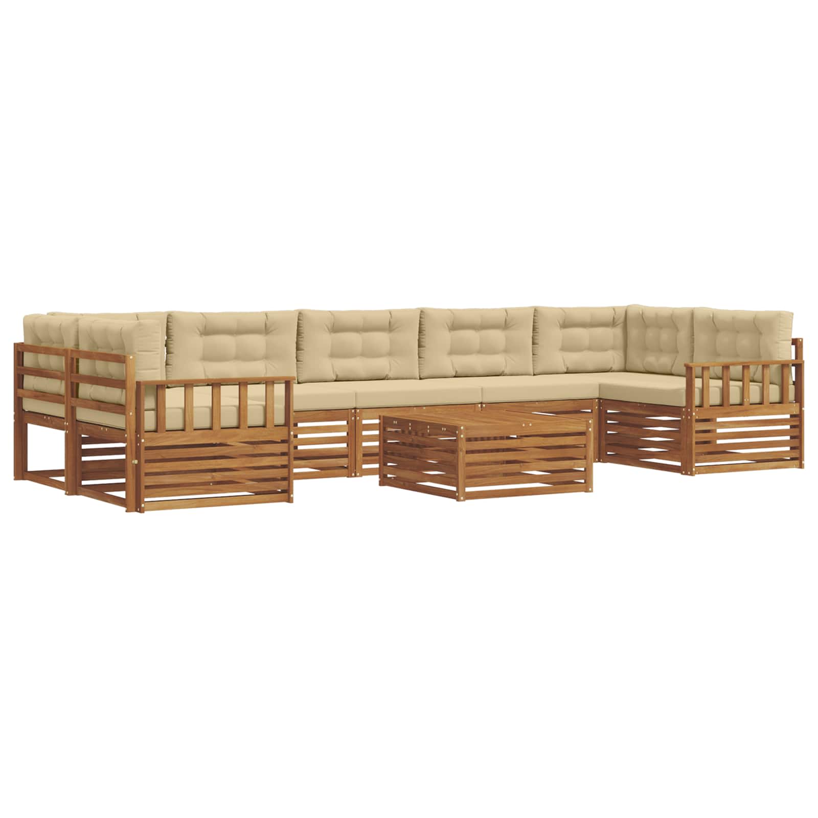 Komplet zunanjega pohištva združuje slog in praktičnost in tako ustvari resničnega lepotca v vsakem vrtu ali na terasi. Njegov moderni dizajn s čistimi linijami in minimalnimi detajli doda eleganco in omogoča sprostitev na prostem. Izdelan je iz trdnega akacijevega lesa, kar zagotavlja trpežnost in dolgotrajno privlačnost, zato je prava izbira za tiste, ki iščejo tako praktičnost kot stil v zunanjem pohištvu. Vzdržljiv trden akacijev les: Ta set zunanjega pohištva, narejen iz trdnega akacijevega lesa, je znan po svoji vzdržljivosti in odpornosti na različne vremenske razmere. Trdna konstrukcija zagotavlja dolgo uporabo, medtem ko topli naravni ton obogati vsak vrt ali teraso. Vremensko odporna zasnova: Set ima lakirano površino, ki ščiti pred soncem, dežjem in drugimi vremenskimi vplivi. Poliran zaključek ohranja videz in funkcionalnost ter zagotavlja dolgotrajno trajnost. Komponente in zasnova: Vsak del, od naslonov za roke do naslonov za hrbet, je zasnovan za udobje in slog. Konstrukcija zagotavlja vizualno usklajenost, primerna za različne zunanje dogodke. Udobje in prilagodljivost: Modularna zasnova omogoča prilagodljive nastavitve, ki ustrezajo različnim prostorom in potrebam. Idealno za sprostitev, družabna srečanja ali branje, se set brez težav prilagaja vsakemu okolju. Enostavna nega in vzdrževanje: Da ohranite pohištvo v dobrem stanju, ga obrišite z vlažno krpo in se izogibajte ostrim čistilom. Redna nega ohranja videz in podaljšuje življenjsko dobo pohištva.