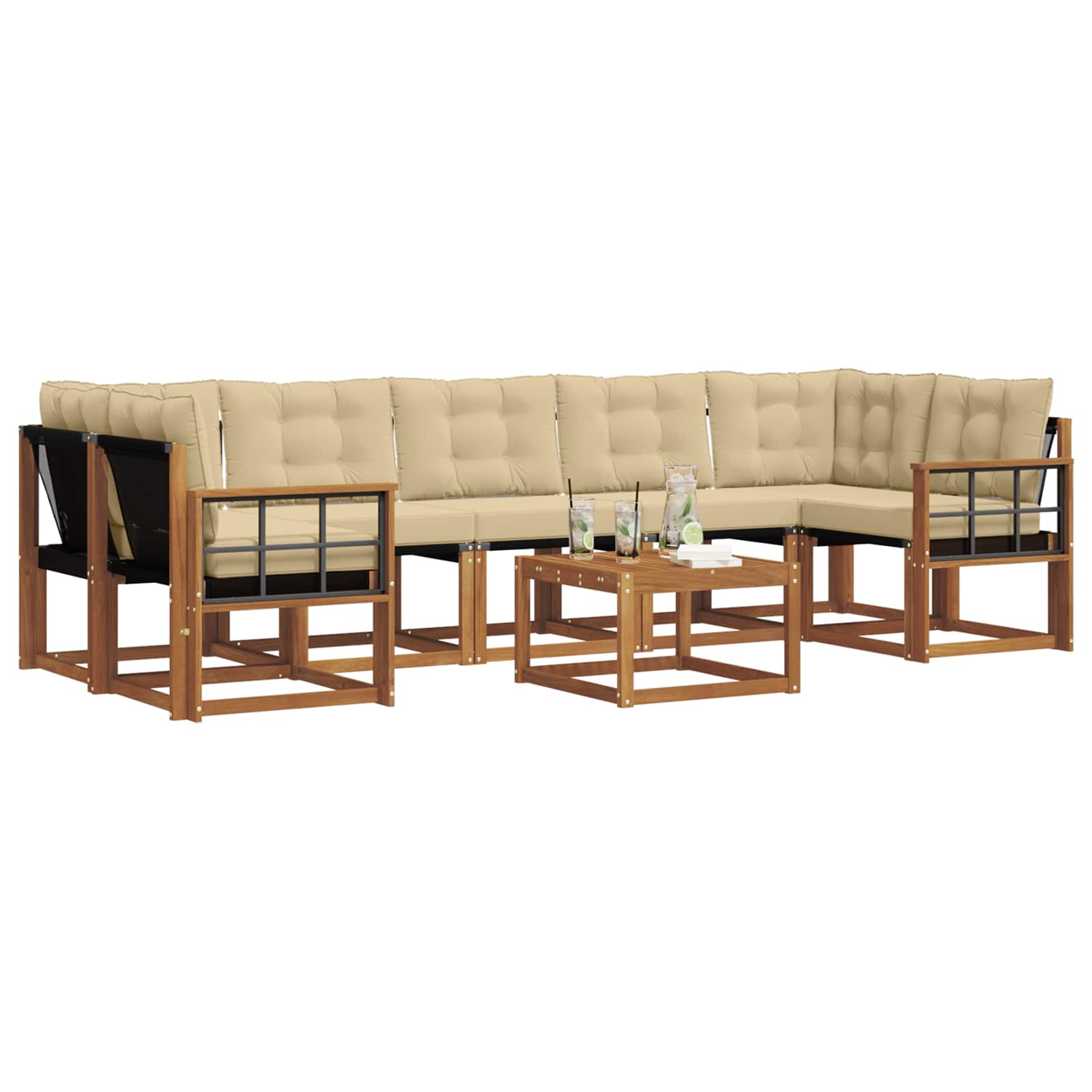 Ta moderni set zof predstavlja idealno izbiro za tiste, ki uživajo v sprostitvi na prostem. Njegova minimalistična zasnova v rjavih odtenkih dvigne vsak vrt ali bazen. Ponuja prijetno vzdušje za druženja, zahvaljujoč kombinaciji topline akacijevega lesa in udobne sedežne površine tekeslina. Ne glede na to, ali gre za poletno zabavo ali samo sproščujoče trenutke, podpira udobje in estetski videz. Materiali: Ta set zof je narejen iz akacijevega lesa, ki je zelo močan in odporen na vlago, kar mu daje dolgoživost na prostem. Skupaj s texilenom ponuja udobje, ki preživi različne vremenske razmere in doda naravno eleganco vsakemu zunanjemu prostoru. Funkcionalna zasnova: Vsaka komponenta seta, od talne plošče do podpore, je zasnovana z namenom izboljšanja uporabniške izkušnje. Slatna plošča omogoča hitro odvajanje dežne vode, tako da preprečuje njeno kopičenje. Podporno naslonjalo poskrbi za optimalno udobje, ko ležite. Praktične lastnosti: Debelo oblazinjene blazine zagotavljajo udobje. Na voljo so tudi zadrge za enostavno čiščenje ali zamenjavo, kar podaljšuje njihovo življenjsko dobo in omogoča enostavno vzdrževanje. Različne uporabnosti: Idealno za vrt, patio ali bazen, ta komplet zof je zelo vsestranski in ustreza različnim potrebam uporabnikov. Njegov sodoben dizajn omogoča prilagoditev različnim okoljem za sprostitev ali družabne aktivnosti. Nizko vzdrževanje: Zelo enostavno je vzdrževati ta set zof. Preprosto obrišite z vlažno krpo, da ostane videti odlično, medtem ko je texilen odporen na bledik. To nizko vzdrževanje zagotavlja, da komplet ostane v formi in vabljiv skozi vse leto.