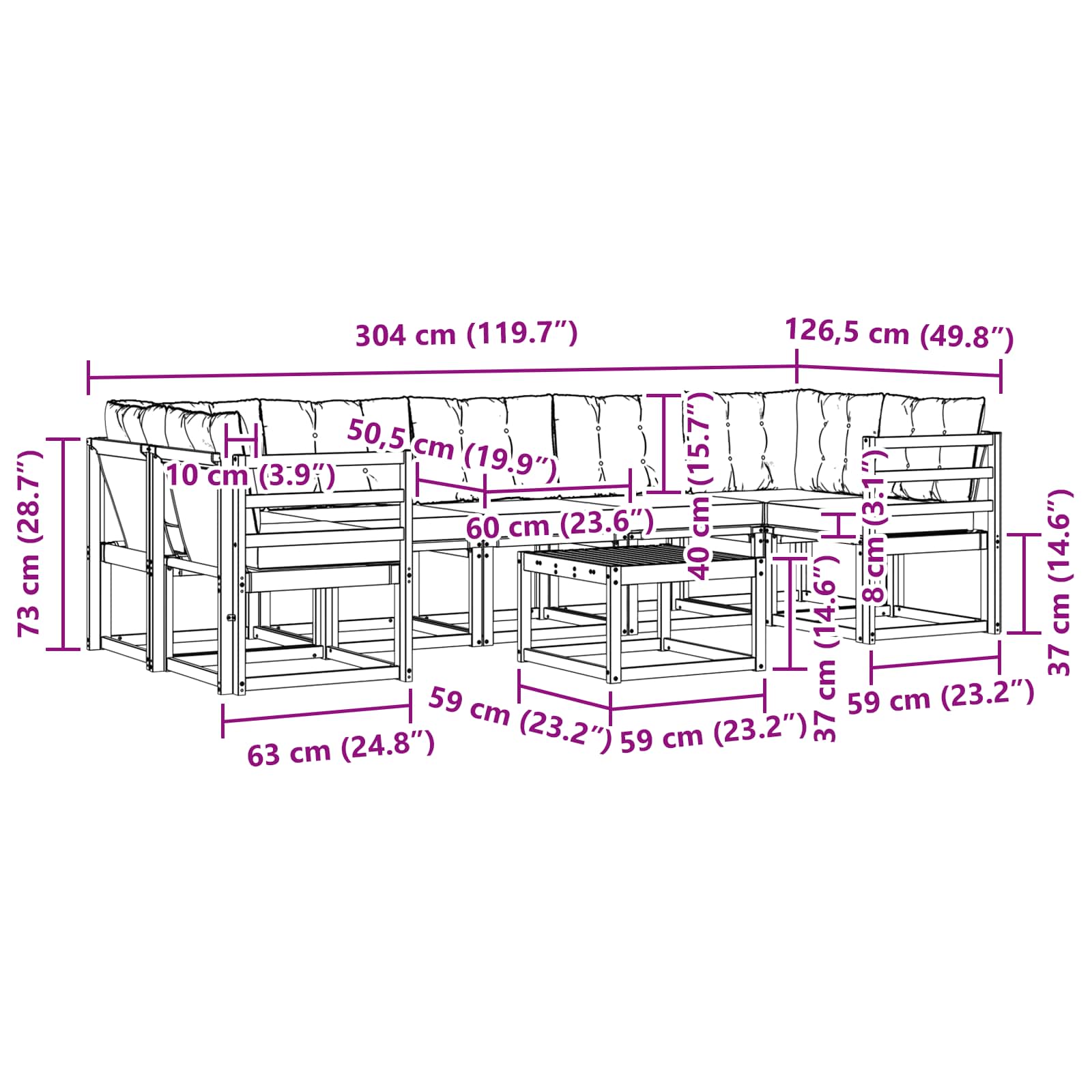 - 9 x Nazadnja blazina: 60 x 40 x 10 cm (DxŠxV)