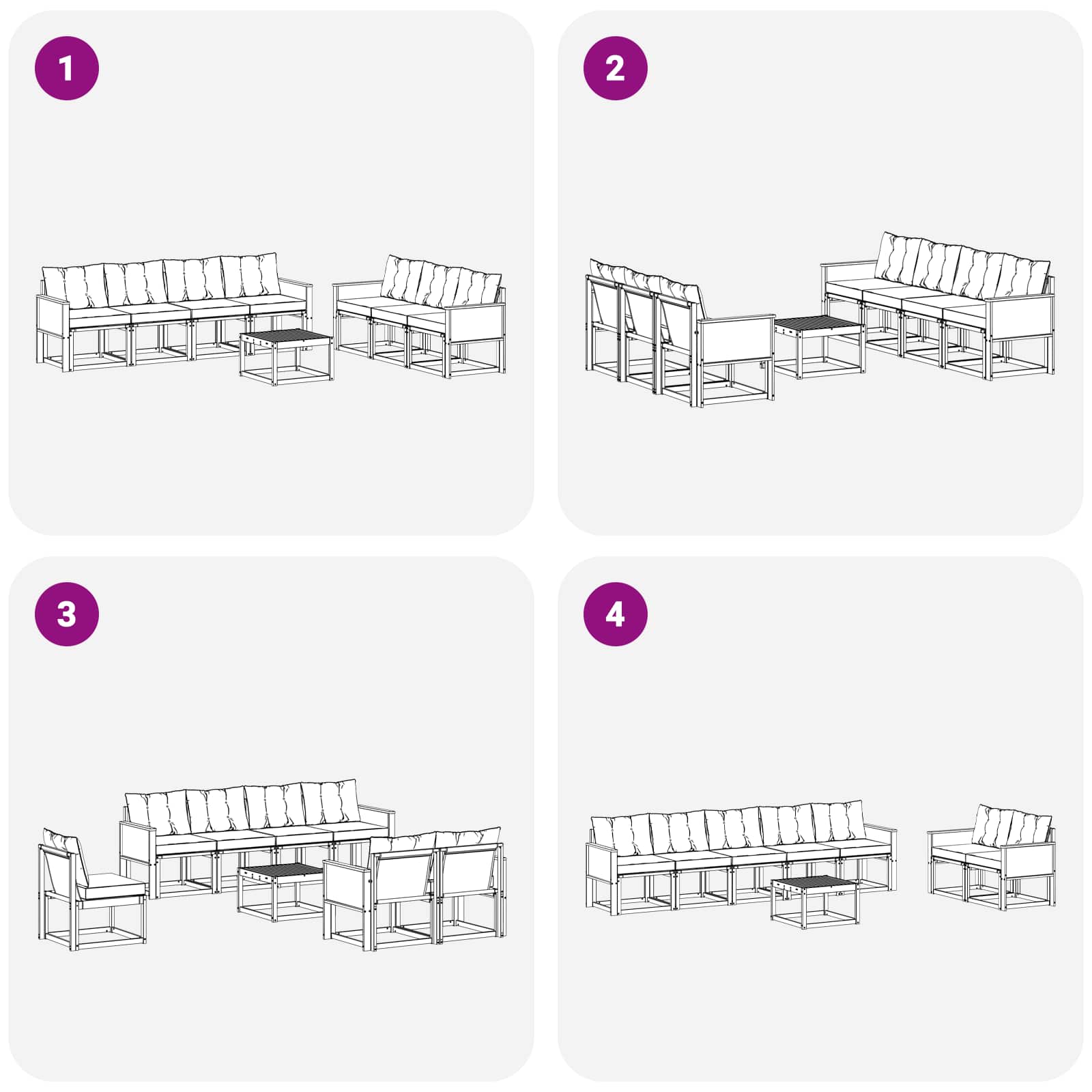 - 7 x Sedežna blazina: 60 x 50,5 x 8 cm (D x Š x T)