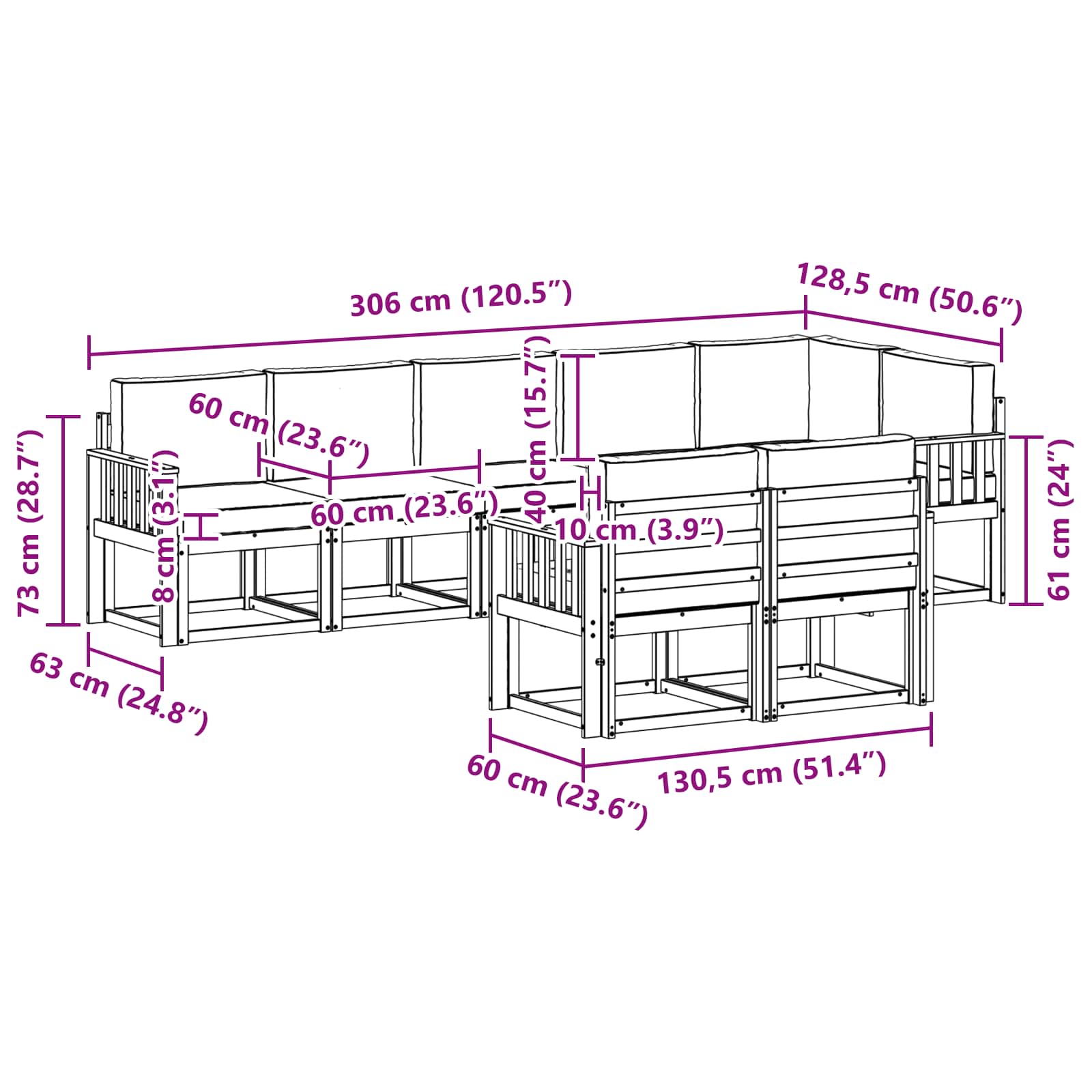- 8 x sedežni blazina: 60 x 60 x 8 cm (D x Š x V)