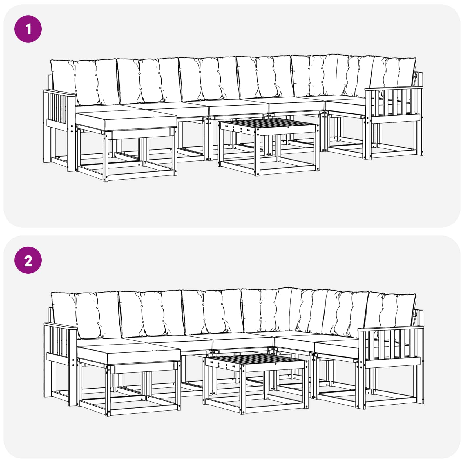 - 7 x Zadajna blazinica: 60 x 40 x 10 cm (D x Š x V)