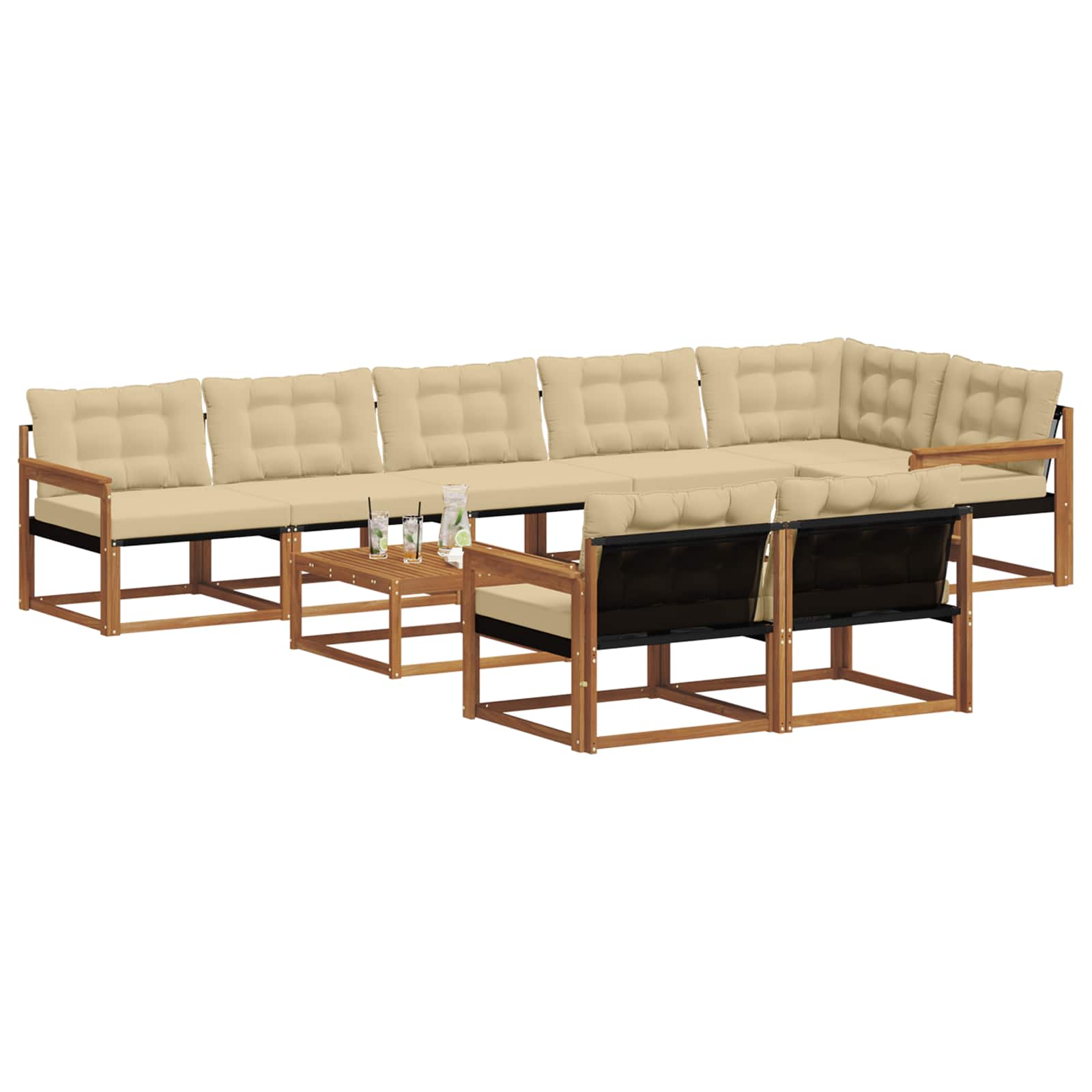 Ta zunanja garnitura pohištva ponuja odlično kombinacijo stila in funkcionalnosti ter je pravi osrednji kos za vaš vrt ali teraso. Njegov modern dizajn čisti linije in minimalistični detajli dodajajo elegance ter omogočajo sprostitev in družabne dogodke. Narejena iz močnega akacijevega lesa, tato garnitura zagotavlja dolgotrajno estetiko in vzdržljivost, kar je idealno za tiste, ki iščejo praktično in domiselno zunanjo opremo. Trden akacijev les: Močno pohištvo je znano po svoji vzdržljivosti in odpornosti proti vremenskim vplivom. Konstrukcija zagotavlja dolgotrajno stabilnost in tkanina v toplem tonu obogati vaš zunanji prostor. Vremensko odporna površina: Lakirana površina nudi dodatno zaščito pred soncem in dežjem, kar pomeni, da bo vaš kavč dolgo ostal v odličnem stanju. Poliran zaključek ohranja videz ter funkcionalnost, kar še podaljšuje življenjsko dobo. Zasnova za udobje: Vsaka enota, od naslonov do sedišč, je zasnovana tako, da nudi udobje in stilsko kohezijo, kar je primerno za različne priložnosti na prostem. Modularna prilagoditev: Modularni dizajn omogoča, da se kavč prilagodi različnim potrebam, saj je popoln za sprostitev, družabne dogodke ali trenutke branja. Ta fleksibilnost zagotavlja maksimalno udobje in uporabnost. Enostavna nega: Za ohranitev dolge življenjske dobe enostavno obrišite z vlažno krpo in se izogibajte močnim čistilom. Redno vzdrževanje vam pomaga, da pohištvo izgleda kot novo.