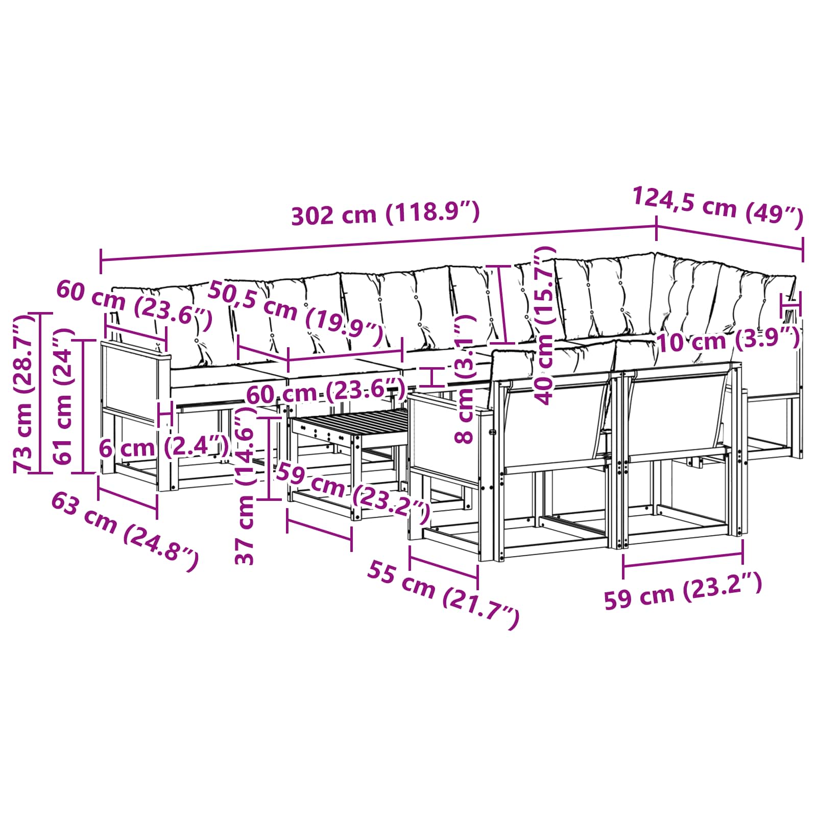 - 9 x Hrbtna blazina: 60 x 40 x 10 cm (D x Š x T)