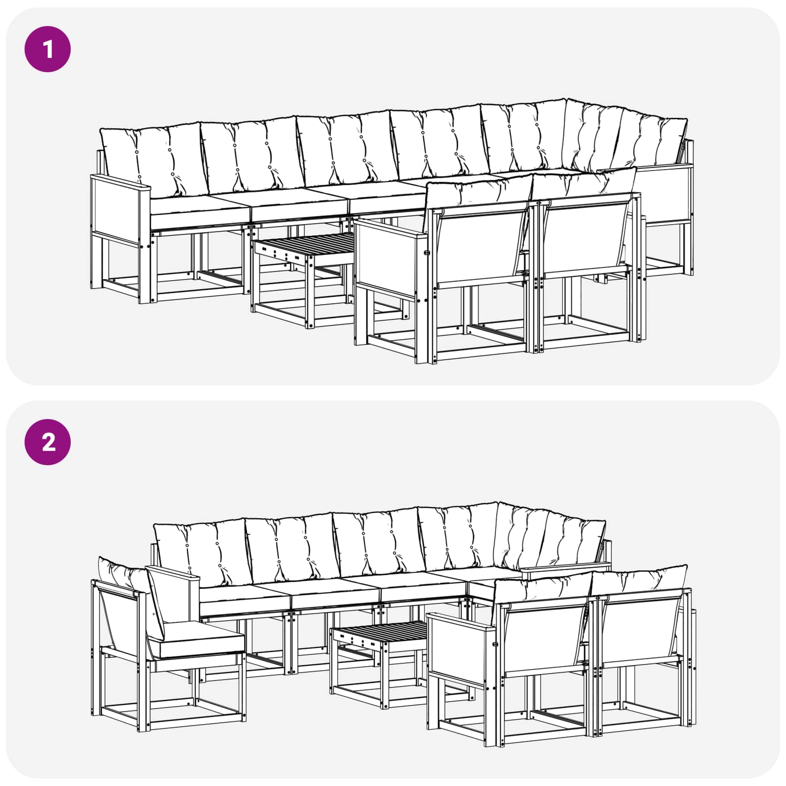 Komplet zunanjega pohištva povezuje stil in funkcionalnost, kar ustvari privlačen osrednji del za vsak vrt ali teraso. Njegova moderna zasnova s čistimi linijami in minimalističnimi podrobnostmi dodaja eleganco in pri tem omogoča sprostitev na prostem ter druženje. Izdelan iz trdnega akacijevega lesa, komplet nudi dolgotrajno vizualno privlačnost, kar ga naredi popolno izbiro za tiste, ki cenijo praktičnost in rafiniran dizajn zunanjega pohištva. Trajna trdna akacija: Ta komplet zunanjega pohištva je iz trdnega akacijevega lesa, ki je znan po svoji trpežnosti in odpornosti na vremenske razmere. Močna konstrukcija bo nudila zanesljivo podporo in dolgo življenjsko dobo, barva pa bo dodala naravno toplino k vsakemu okolju v tvojem vrtu ali na terasi. Vremensko odporna zasnova: Ta komplet ima zaščiteno površino, ki se upira sončnim žarkom, manjšim padavinam in drugim zunanjim vplivom. Polirana obdelava pomaga ohranjati videz in funkcionalnost, kar zagotavlja dolgotrajno vzdržljivost za tvoj vrt, teraso ali dvorišče. Komponente in zasnova: Vsak kos, od naslonjal do hrbtnih delov, je zasnovan za stil in funkcionalnost. Podporni elementi nudijo dodatno udobje, celovit dizajn pa zagotavlja vizualno usklajenost, primerno za različne zunanje priložnosti. Udobje in vsestranskost: Modularna zasnova omogoča prilagodljive postavitve, ki ustrezajo različnim prostorom in potrebam. Popoln za sproščanje, druženje ali mirno branje, ta komplet se brez problemov prilagaja vsakemu zunanjemu okolju, kar maksimira udobje in uporabnost. Enostavno vzdrževanje: Da ohraniš pohištvo v dobrem stanju, samo obriši površino z vlažno krpo in se izogibaj ostrim ali abrazivnim čistilom. Redno vzdrževanje bo podaljšalo njegov življenjski cikel in ohranilo videz pohištva.