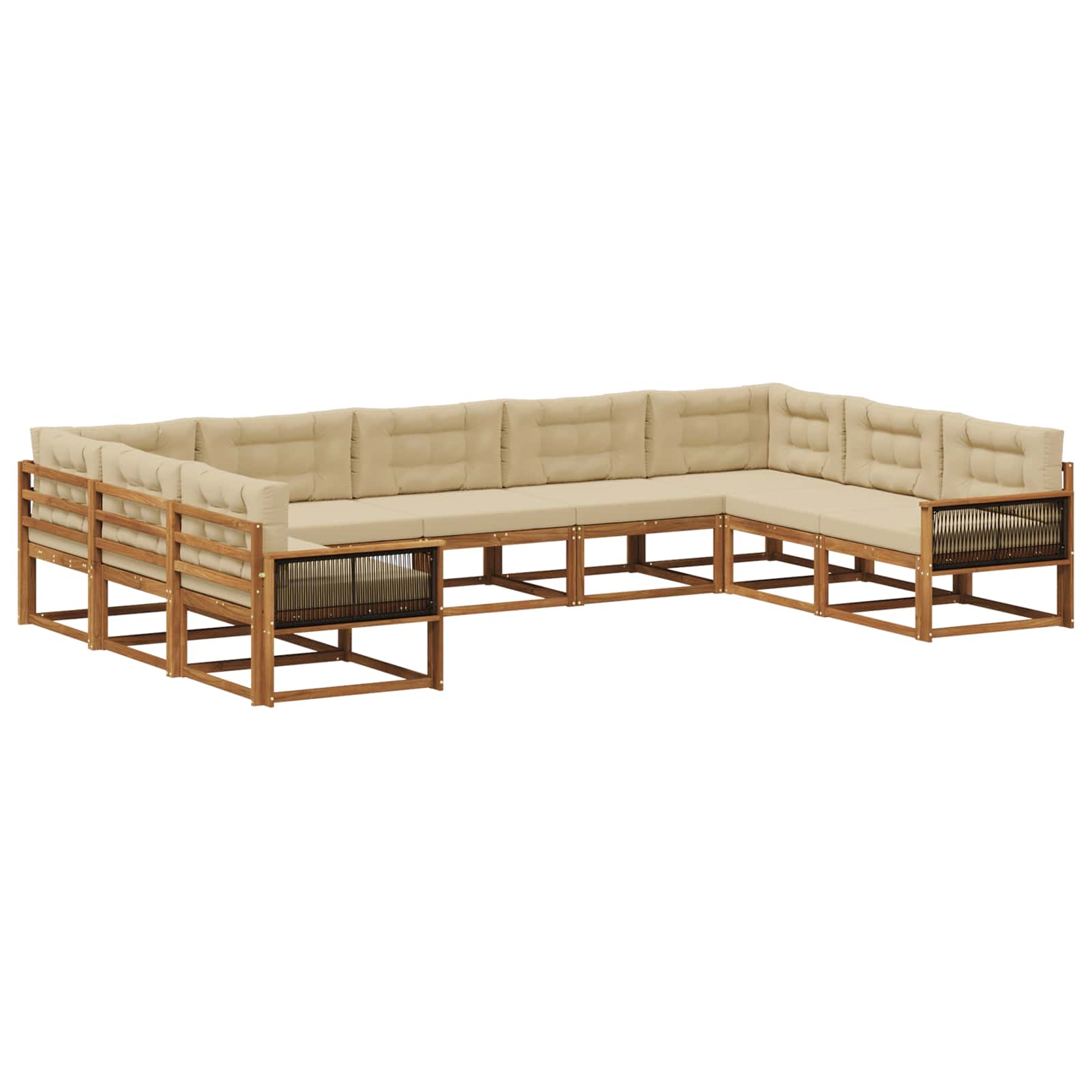 Ta kotna sedežna garnitura je pravi izraz sodobnega sloga in funkcionalnosti, odlična izbira za vsak vrt, patio ali ob bazenu. Njena elegantna zasnova s čistimi linijami je za tiste, ki cenijo preprostost in praktičnost. Ne glede na to, ali organiziraš druženje ali uživaš v mirnem večeru, ta garnitura ponuja udobje in večjo uporabnost ter postane nujen del tvojega zunanjega življenja. Trdna konstrukcija: Celoten set je iz solidnega akacijevega lesa, ki je znan po svoji vzdržljivosti. Ta les prenese različne vremenske razmere in je odlična izbira za zunanjo uporabo. Njegova trda buda zagotavlja dolgo življenjsko dobo, kar ti omogoča, da uživaš v svojem zunanjem raju doli še dolgo časa. Pohodna zasnova: S premišljeno zasnovo hrbta, ta sedež nudi podporo in udobje. S to zasnovo ima tudi boljše kroženje zraka, kar povečuje udobje v toplejših dneh. Ta dizajn prinaša tudi sodoben pridih celotni estetiki. Praktični nasloni za roke: Z robustnimi akacijevimi nasloni, ta garnitura povečuje udobje in ti omogoča popolno sprostitev. Nasloni nudijo dodatno podporo za pogovore ali uživanje na prostem. Ta lastnost združuje slog in funkcionalnost na odličen način. Enostavno vzdrževanje: Svoje pohištvo enostavno neguj z brisanjem z vlažno krpo in uporabo prevleke, ko ga ne uporabljaš. Trdna konstrukcija zahteva minimalno vzdrževanje, kar ti daje več časa za uživanje na prostem. Izogibaj se neposredni sončni svetlobi, da ohraniš naravni sijaj. Sestavljanje: Ta set je zasnovan za enostavno sestavljanje, potrebuje le dve osebi in izvijač. Postupak zagotavlja stabilnost in takojšnjo pripravljenost, da tvoj prostor zasije.