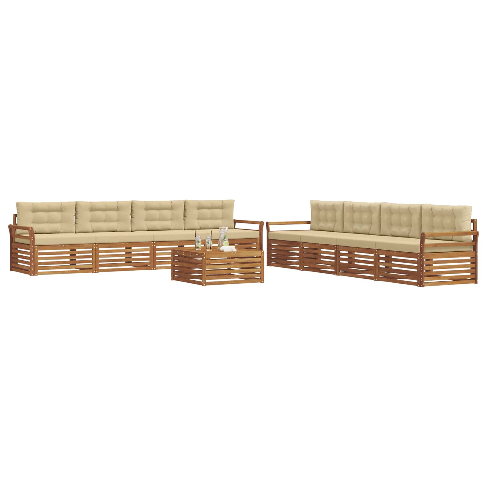 Naš zunanji kavč set je idealen za preoblikovanje vašega vrta ali terase v moderno oazo, kjer se srečata slog in funkcionalnost. Zasnovan preprosto in brez odvečnega okrasja, ta set izraža eleganco in sofisticiranost ter je popoln za tiste, ki imajo radi čiste linije in moderno estetiko. Njegova večnamenska barva ter eleganten dizajn zagotavljata, da se prilega vsakemu zunanjemu prostoru, kar ustvarja prijetno vzdušje, bodisi za gostitelje bodisi za umirjeno branje s knjigo v roki. Trden akacijev les: Narejen iz močnega akacijevega lesa, ta kavč set je zelo vzdržljiv in prenese različne vremenske vplive. Akacijev les je znan po svoji lepoti in naravni odpornosti, kar mu daje estetski čar in hkrati ustvarja močno podlago za vsakodnevno uporabo. Enotna barva: Kavč set je obdelan v čudoviti rjavi barvi, ki se lepo ujema z različnimi vrtnarskimi okolji in barvami. Ta doslednost izboljšuje celoten videz vašega zunanjega prostora ter ustvarja vabljiv in kohezivno okolje, kjer je prijetno preživeti čas. Fiksni okvir: Fiksni okvir zagotavlja stabilnost in zanesljivost, kar je praktično za zunanje sedenje. Njegova močna konstrukcija nudi podporo in je hkrati estetsko privlačna. Modularne možnosti: Uživajte v prilagodljivosti z modularnim dizajnom. Spremenite konfiguracijo glede na priložnost, naj gre za intimno srečanje ali večje druženje. Ta prilagodljivost odraža nenehnemu spreminjanju naravo zunanjih zabav. Enostavno vzdrževanje: Ohraniti ta kavč set je enostavno: le obrišite ga z vlažno krpo, da ohranite svežino in privlačnost z minimalnim trudom ter podaljšate življenjsko dobo pohištva.