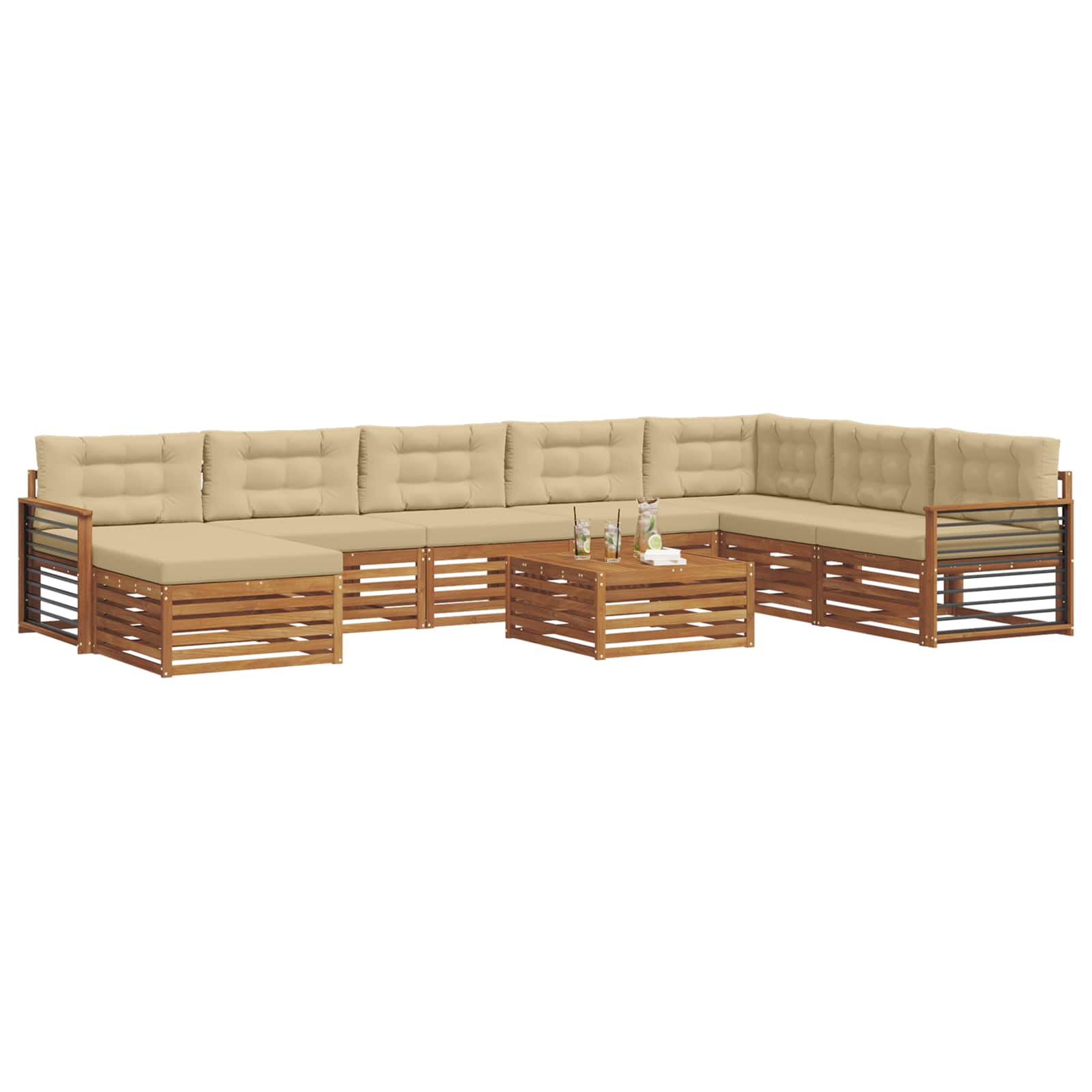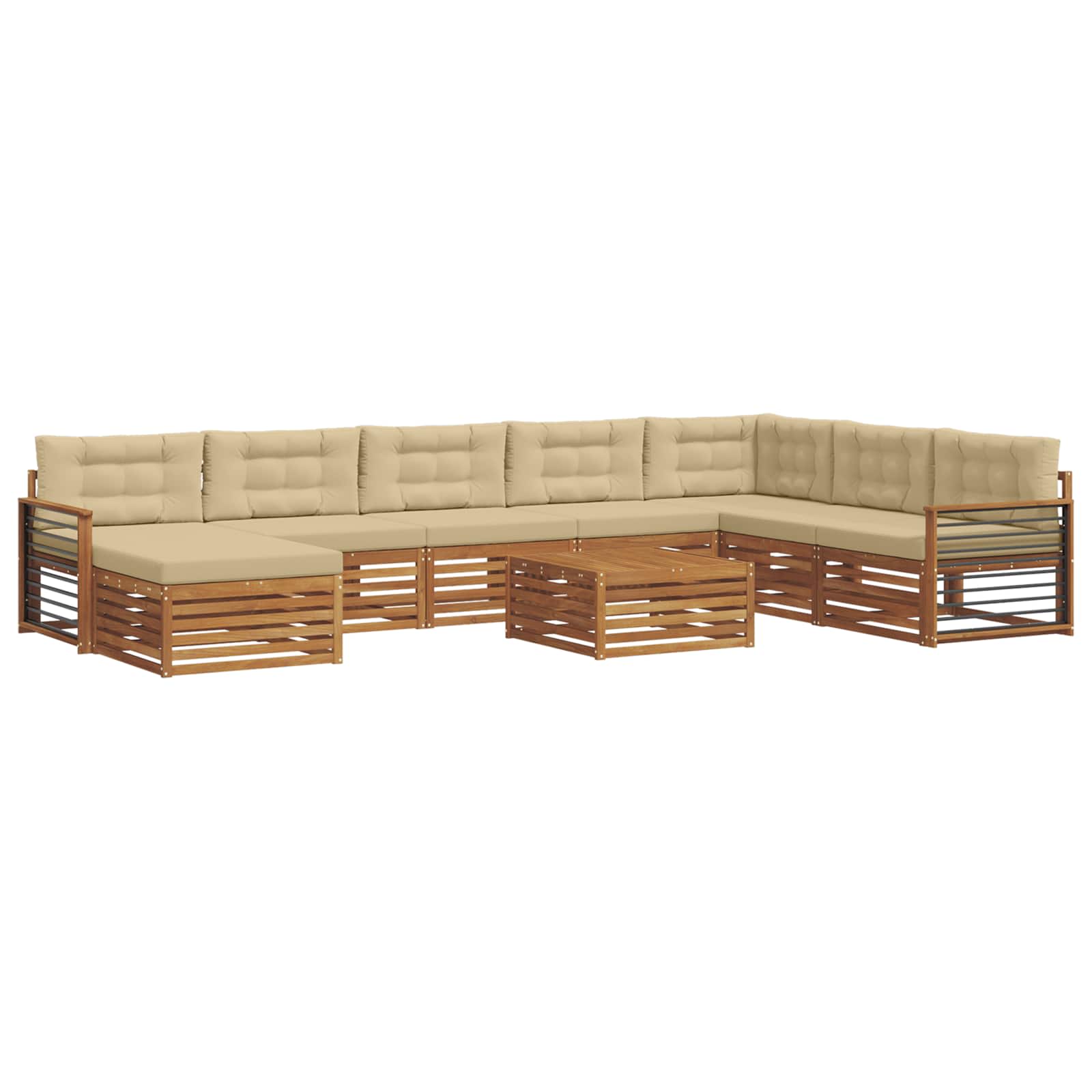 Ta zunanji kotni kavč je zasnovan, da izboljša vsak vrt, teraso, prostor ob bazenu ali dvorišče. Z modernim slogom, ki združuje preprostost in funkcionalnost, ta komplet nudi čisto obliko in minimalističen izgled, idealen za sprostitev ali druženje. Elegantna rjava barva daje naraven videz, ki se brez težav zlije z zunanjo naravo, hkrati pa nudi dovolj prostora za sedenje za družino in prijatelje. Material konstrukcije: Zgrajen iz trdnega akacijevega lesa, ta kavč nudi robustno vzdržljivost in privlačen naravni zaključek, ki zdrži zunanje razmere. Gostota lesa in edinstven značaj ustvarjata topel in vabljiv prostor, njegovi naravni olji pa ščitijo pred insekti in zagotavljajo dolgotrajno uporabo. Moderna zasnova: Sodobni dizajn združuje čiste linije in minimalizem, kar je idealno za današnje zunanje prostore. Rjava barva se lepo dopolnjuje z zelenjem, kar ga dela estetsko privlačnega za vsak zunanji prostor. Njegova modularna zasnova vam omogoča, da ga prilagodite vašim potrebam. Udobne lastnosti: Sedenje iz trdnega akacijevega lesa je povezano z blagimi 100-odstotnimi poliester blazinami, ki nudijo udobno površino za sprostitev. Tkanina je prijetna, a vzdržljiva, kar zagotavlja udobje med časomšnje preživljanje na prostem, enostavna je za čiščenje in nudi dolgotrajno življenjsko dobo brez žrtvovanja udobja. Integracija komponent: S predelanim naslonom in trdnimi nasloni za roke, komplet nudi celoten robusten okvir. Ti dodani elementi zagotavljajo ergonomično sedenje, kar nudi podporo in udobje pri dolgotrajnem sedenju. Enostavno vzdrževanje: Ohranite svoj kavč v vrhunskem stanju z enostavnimi navodili za nego – obrišite z vlažno krpo, da odstranite prah ali umazanijo, kar podaljšuje življenjsko dobo izdelka ter ohranja njegovo vizualno privlačnost brez težav.