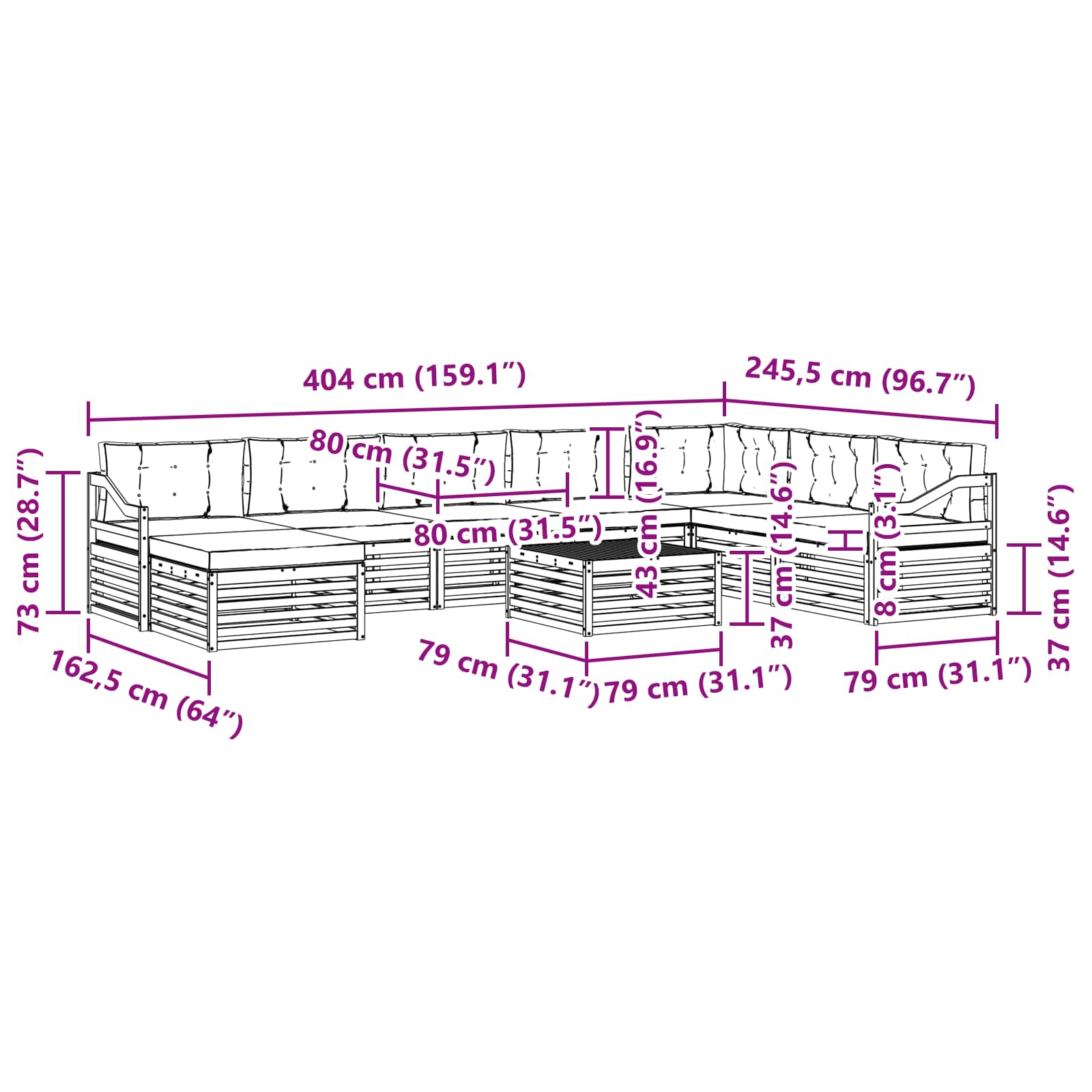 - 8 x Blazina za sedenje: 80 x 80 x 8 cm (D x Š x V)