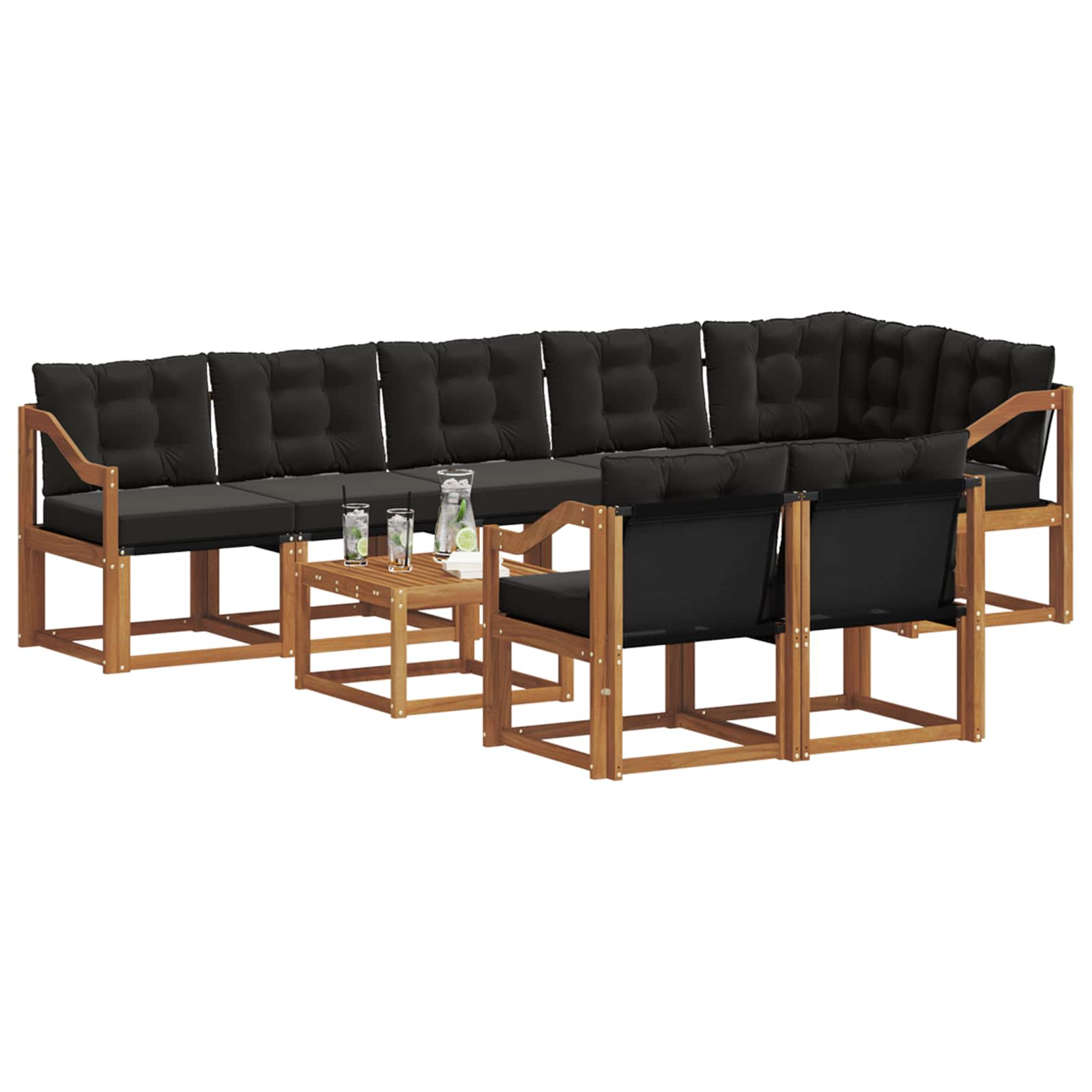 Komplet zunanjega pohištva povezuje stil in funkcionalnost, kar ustvari privlačen osrednji del za vsak vrt ali teraso. Njegova moderna zasnova s čistimi linijami in minimalističnimi podrobnostmi dodaja eleganco in pri tem omogoča sprostitev na prostem ter druženje. Izdelan iz trdnega akacijevega lesa, komplet nudi dolgotrajno vizualno privlačnost, kar ga naredi popolno izbiro za tiste, ki cenijo praktičnost in rafiniran dizajn zunanjega pohištva. Trajna trdna akacija: Ta komplet zunanjega pohištva je iz trdnega akacijevega lesa, ki je znan po svoji trpežnosti in odpornosti na vremenske razmere. Močna konstrukcija bo nudila zanesljivo podporo in dolgo življenjsko dobo, barva pa bo dodala naravno toplino k vsakemu okolju v tvojem vrtu ali na terasi. Vremensko odporna zasnova: Ta komplet ima zaščiteno površino, ki se upira sončnim žarkom, manjšim padavinam in drugim zunanjim vplivom. Polirana obdelava pomaga ohranjati videz in funkcionalnost, kar zagotavlja dolgotrajno vzdržljivost za tvoj vrt, teraso ali dvorišče. Komponente in zasnova: Vsak kos, od naslonjal do hrbtnih delov, je zasnovan za stil in funkcionalnost. Podporni elementi nudijo dodatno udobje, celovit dizajn pa zagotavlja vizualno usklajenost, primerno za različne zunanje priložnosti. Udobje in vsestranskost: Modularna zasnova omogoča prilagodljive postavitve, ki ustrezajo različnim prostorom in potrebam. Popoln za sproščanje, druženje ali mirno branje, ta komplet se brez problemov prilagaja vsakemu zunanjemu okolju, kar maksimira udobje in uporabnost. Enostavno vzdrževanje: Da ohraniš pohištvo v dobrem stanju, samo obriši površino z vlažno krpo in se izogibaj ostrim ali abrazivnim čistilom. Redno vzdrževanje bo podaljšalo njegov življenjski cikel in ohranilo videz pohištva.