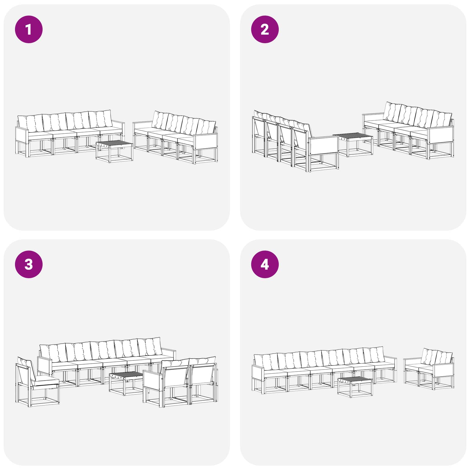 - 7 x Srednji kavč: 59 x 63 x 73 cm (D x Š x V)