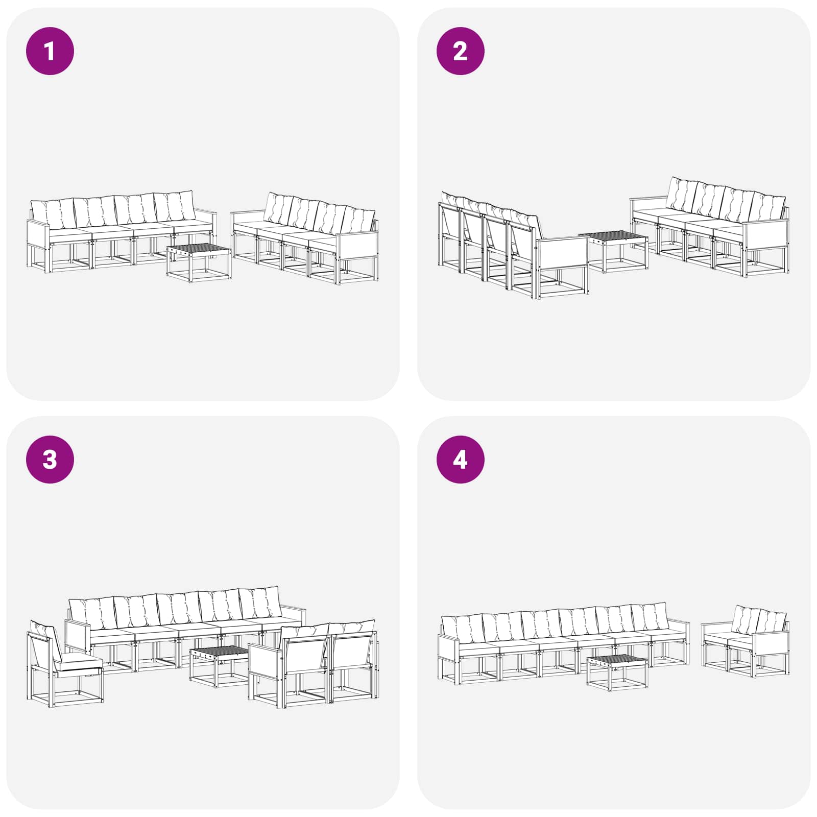 - 7 x Srednji kavč: 59 x 63 x 73 cm (D x Š x V)