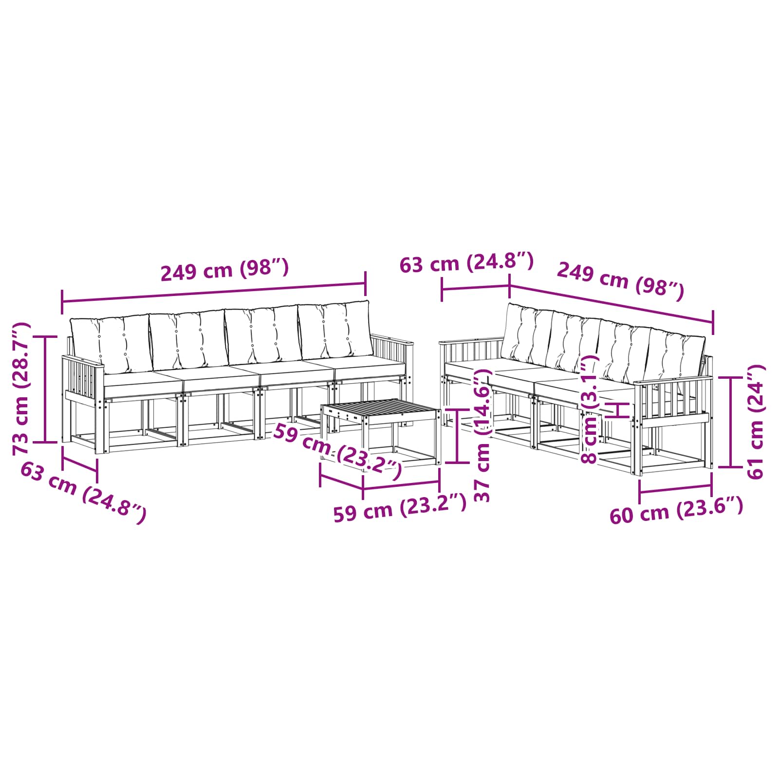 Set zunanjega pohištva prinaša edinstven stil in funkcionalnost, ki ustvarita pravo osrednjo točko za vaš vrt ali teraso. S svojo moderno zasnovo, čistimi linijami in minimalnimi detajli, dodaja eleganco in je idealen za sprostitev ter družabna srečanja. Izdelan iz trdega akacijevca, bo zdržal dolga leta, kar ga naredi za popolno izbiro za tiste, ki iščejo praktičnost in izbrano oblikovanje. Vzdržljiv trden akacijev les: Ta set kavčev je izdelan iz trdega akacijevega lesa, kar mu daje odlično vzdržljivost in odpornost na zunanje vplive. Močna konstrukcija nudi trdno podporo, naravni ton pa lepo dopolni vaš vrt ali teraso. Vremensko odporna zasnova: Lakiran površina nudi zaščito pred soncem, blagim dežjem in drugimi vremenskimi vplivi. Polirana končna obdelava ohranja videz in funkcionalnost, kar zagotavlja dolgotrajno uporabo na vašem vrtu ali terasi. Komponente in zasnova: Vsak kos je zasnovan za kombinacijo stila in funkcionalnosti. Podporne funkcije zagotavljajo udobje, kohezivna zasnova pa daje vizualno harmoničen izgled, primeren za vse zunanje priložnosti. Udobje in vsestranskost: Modularna zasnova omogoča prilagodljive postavitve, ki se prilagajajo različnim prostorom in potrebam. Idealno za sprostitev, druženje ali mirno branje, se ta set enostavno prilagaja vsakemu okolju. Preprosto vzdrževanje: Za ohranjanje pohištva v dobrem stanju, preprosto obrišite površino z vlažno krpo in se izogibajte močno abrazivnim čistilom. Redno vzdrževanje podaljšuje življenjsko dobo pohištva.