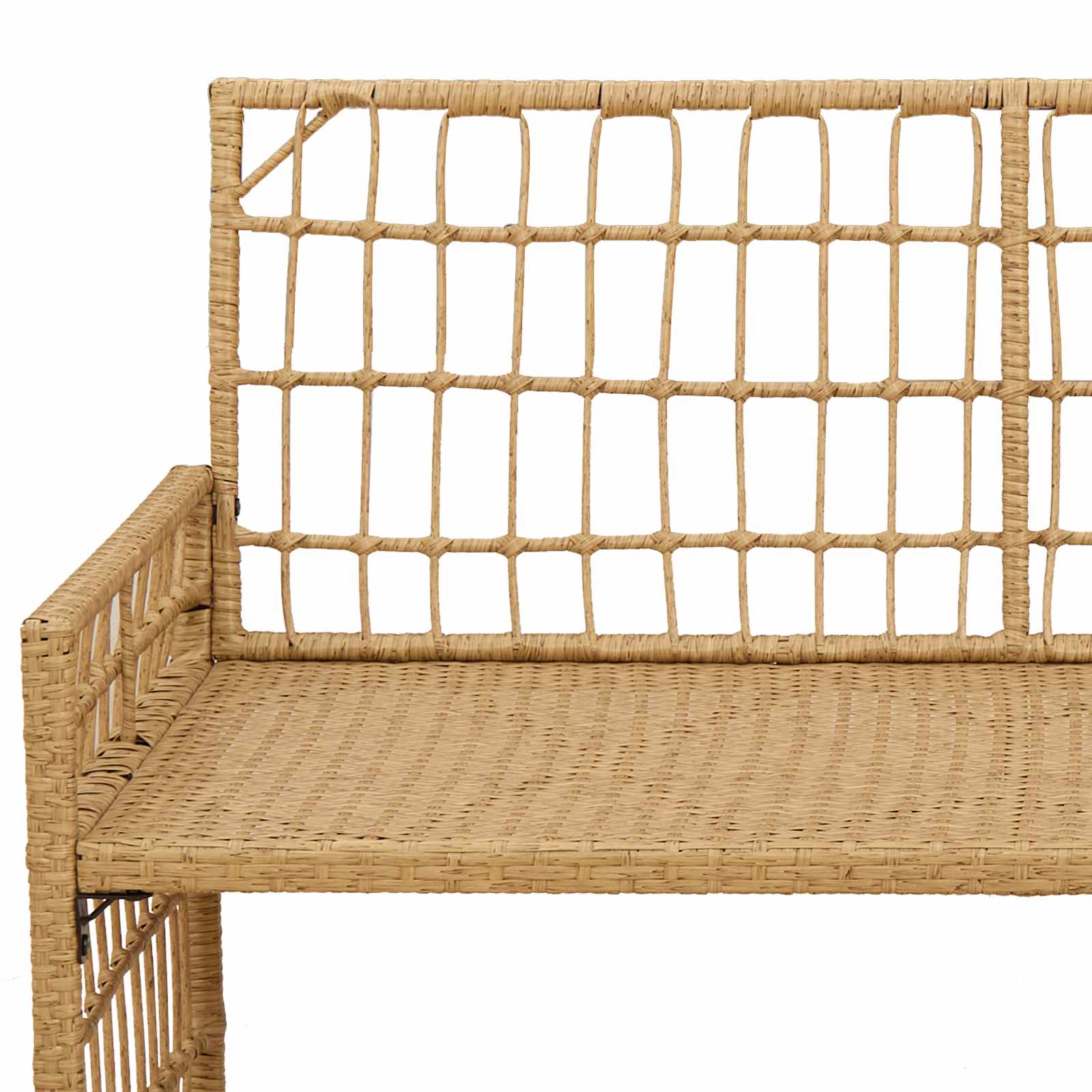 Ta moderna zunanja klop prinaša svežino v vsak vrt ali teraso. Ima rustikalen videz in kombinira poli ratan ter prašno lakirano jeklo, kar zagotavlja eleganco in funkcionalnost. Njena trdna konstrukcija in vremensko odporni materiali jo delajo kot idealno izbiro za vsak zunanji prostor. Prava izbira za tiste, ki želijo združiti udobje, stil in premišljen zunanji slog. Trdni materiali: Narejena iz prašno lakiranega jekla in poli ratana, klop je trpežna in odporna na različne vremenske vplive. Materiali so skrbno izbrani, da klop ostane privlačna skozi vse letne čase. Udobne komponente: Klop ima poli ratanske naslone za roke ter sedežno blazino iz poliesterja, napolnjeno z vlakni in peno, kar zagotavlja prijetno sedenje. Funkcionalna zasnova: Odstranljiva sedežna blazina z zadrgo in blazinice dodajajo funkcionalnost, stabilne noge pa zmanjšajo skrbi glede nagibanja. Večnamenska uporabnost: Naraven videz klopi se lepo poda v vrtove ali terase, nudi zatočišče za sprostitev in zadosti različnim potrebam, od sončenja do družabnih srečanj. Enostavno vzdrževanje: Klop zahteva minimalno nego, saj je enostavna za čiščenje in dolgotrajno ohranjanje videza.