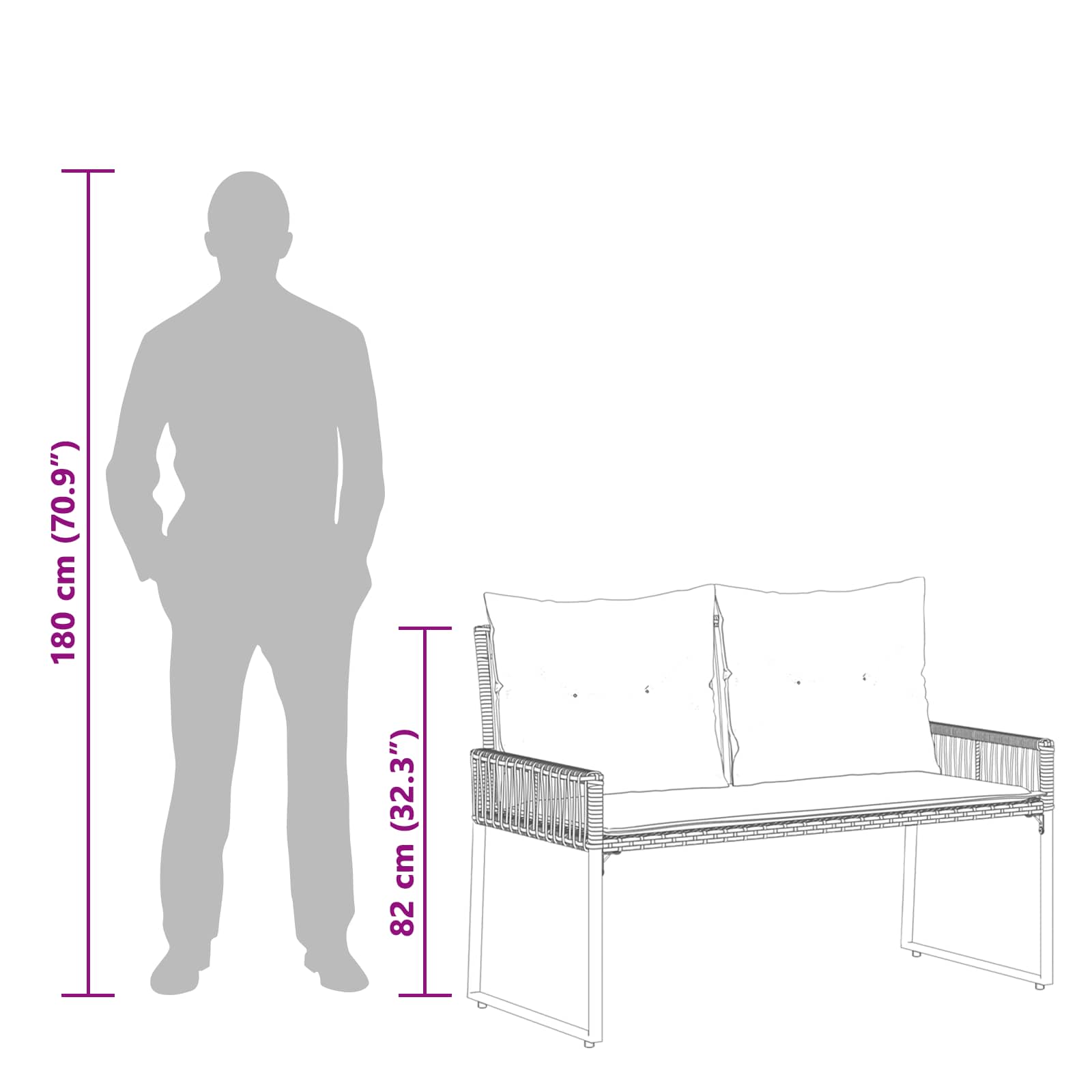 Ta zunanja klop je lep primer rustikalnega šarma s sodobnim dotikom. Narejena je za vse, ki radi preživljajo čas zunaj. Ima elegantno pravokotno obliko in linijski ratan vzorec, ki doda naravno čarovnijo tvojemu vrtu, terasi ali balkonu. Njena trda konstrukcija nudi stabilnost, oblazinjene blazine pa zagotavljajo udobje, tako da si lahko vzameš trenutek za sprostitev v naravi. Materiali: Klop je narejena iz poli ratana in poliestra, z jeklenim okvirjem, ki zagotavlja močno podporo. Ta material, znan po svoji vzdržljivosti in UV odpornosti, je idealen za zunanjo rabo, saj ponuja tako moč kot lep izgled. Vključeni deli: Ima odstranljivo sedežno blazino z skrito zadrgo za enostavno vzdrževanje, ter poliestersko hrbtno blazino za udobje in stil. Kombinacija pene in vlaknastega polnila nudi udobno sedenje za vse. Lastnosti /funkcija /dizajn: Klop ponuja naravno estetiko z močno konstrukcijo, njen izstopajoči dizajn vključuje šivano hrbtno blazino. Zunanja zasnova obljublja zanesljivo podporo in eleganten videz, s poudarjenim udobjem s svojo ergonomijo. Priporočena uporaba: Idealna za zunanje prostore, terase, vrtove in balkone. Njena vsestranska zasnova se prilega različnim rustikalnim in modernim okoljem, zato je odlična izbira za dom, ki želi ustvariti sproščujoč zunanji prostor. Vzdrževanje: Da bo klop izgledala super, jo obrišite z vlažno krpo. Med daljšimi deževnimi obdobji jo zaščitite z vodoodporno prevleko, da podaljšate njeno življenjsko dobo in ohranite nov videz.