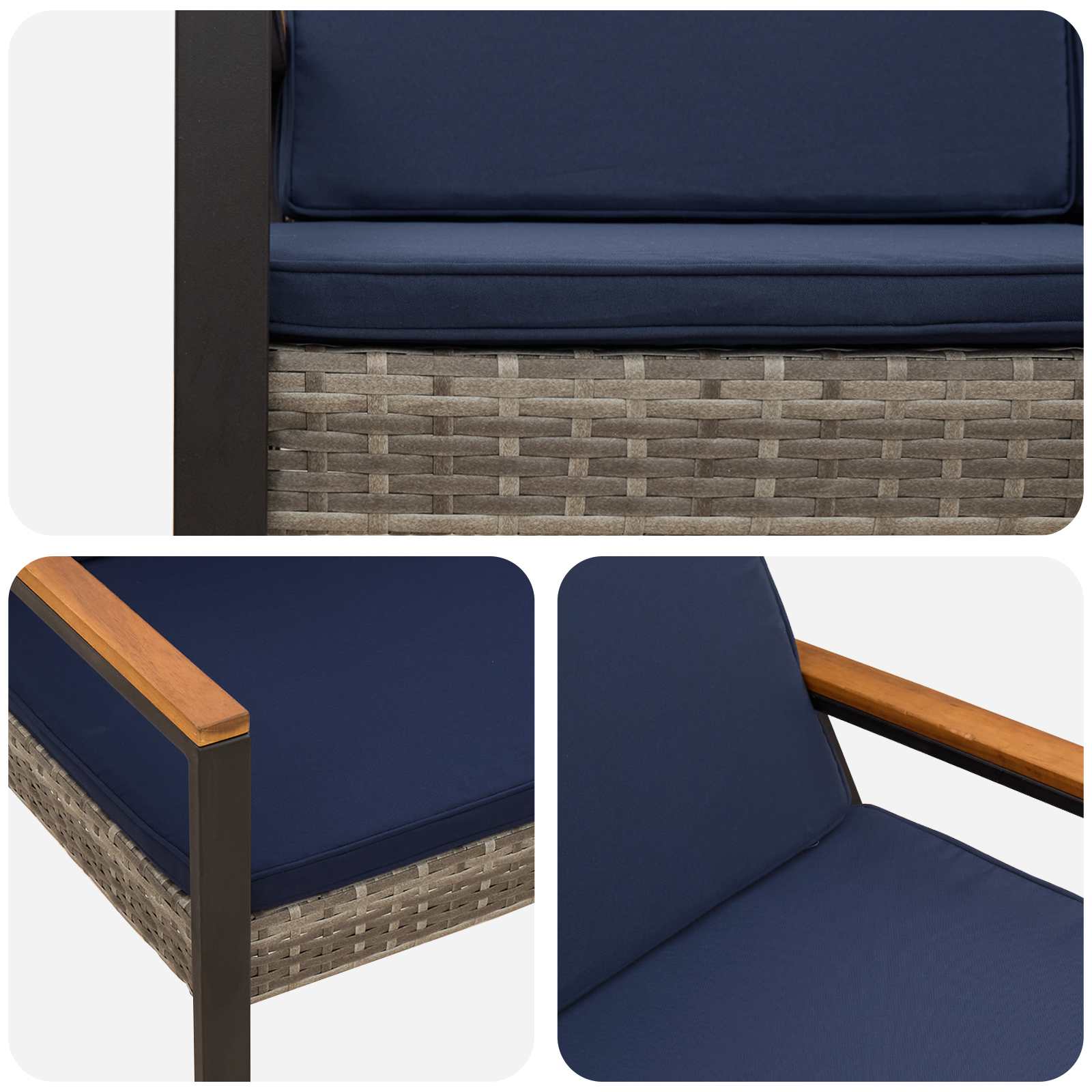 Ta moderna zunanja klop je oblikovana, da izboljša vaš patio ali vrt s svojimi preprostimi linijami in minimalističnim slogom. Iz poli ratana in z jeklenim okvirjem, je robustna in dolgoživa. Super za poletne družabne prireditve, udobno sedenje vas vabi, da se sprostite in uživate na svežem zraku. Trajna konstrukcija : Zasnova s prašno lakiranim okvirjem, ta klop nudi močno podporo in dolgo življenjsko dobo. Okvir je zaščiten pred obrabo, zato je odlična za zunanjo uporabo. Udobno sedenje : Ima snemljive in enostavno pralne blazine, kar zagotavlja udobje in priročnost. Uživajte v sedenju s penastimi poliester blazinami, ki nudijo odlično udobje. Vremensko odporna zasnova : Poli ratan material je UV-odporen in se dobro upira poletnim sončnim žarkom ter slabemu vremenu, kar pomeni brezskrbno izkušnjo. Funkcionalna estetika : S sodobnim videzom se klop lepo prilega različnim stilom zunanjosti. Njena minimalistična zasnova nudi šik prostor za sedenje. Nastavljive nogice : Idealen za neravne površine, zagotavljajo stabilnost in varnost, ne glede na lokacijo postavitve.
