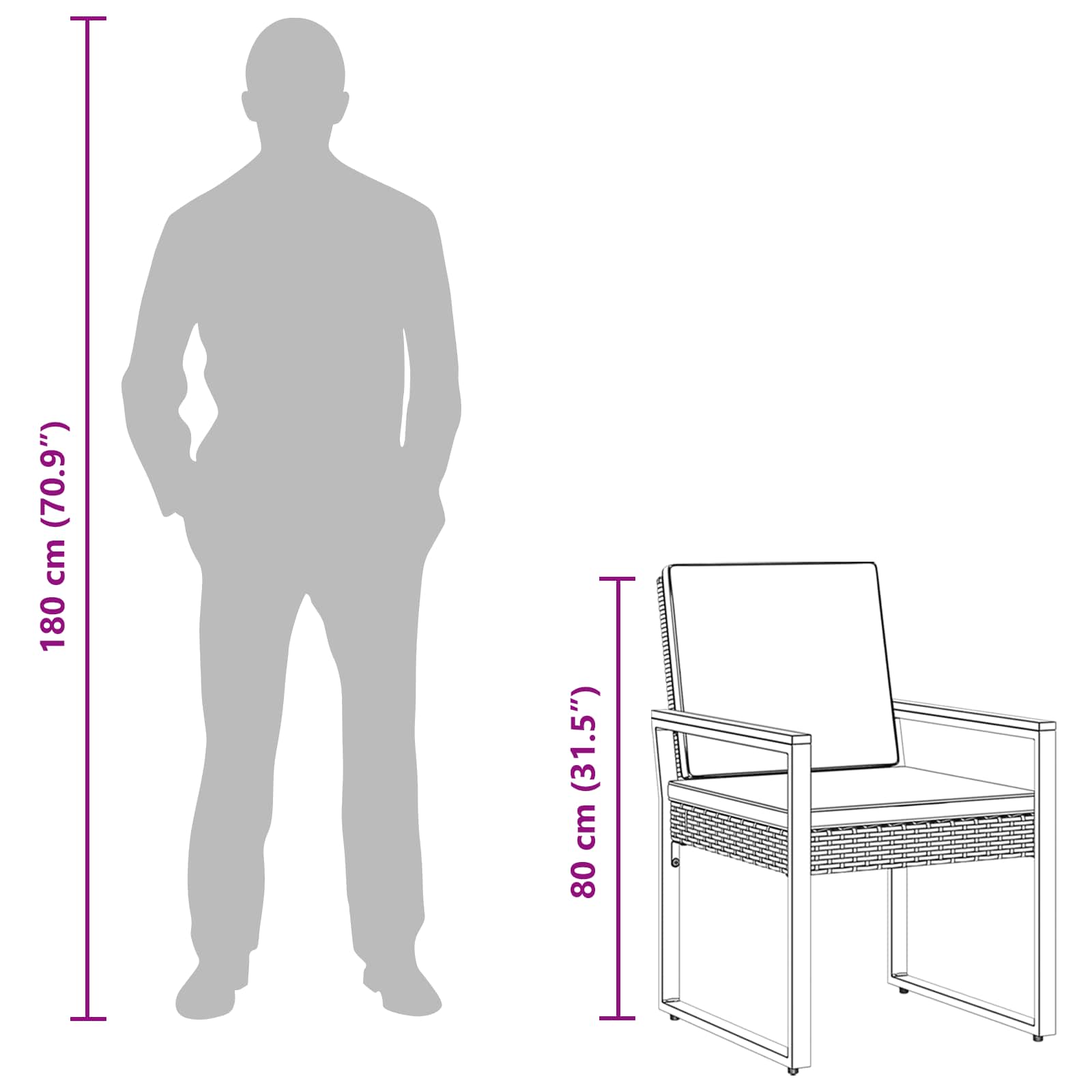 Zasnovan za dolgo obstojnost in stilski videz, ta set zunanjega pohištva združuje elegantno zasnovo in praktične značilnosti. Njegova letvasta miza natančno odvaja vodo, medtem ko prašno lakiran jekleni okvir nudi stabilnost in odpornost na različne vremenske razmere. Odstranljive blazine omogočajo udobno sedenje in enostavno vzdrževanje, kar ta set idealno naredi za sprostitev, obedovanje ali druženje na vrtu, terasi ali balkonu, ter zlahka izboljšuje videz vsakega zunanjega prostora. Material odporen na vreme: Komplet zunanjega pohištva je iz poliratana, ki daje naraven videz in se dobro ujema z zunanjimi prostori. UV-odporen in prilagojen zunanjemu okolju, bo obdržal svojo barvo in strukturo tudi pod močnim soncem in različnih vremenskih razmerah. Prašno lakiran jeklen okvir: Stoli so robustni, z prašno lakiranim jeklenim okvirjem. Ta premaz nudi zaščito pred rjo in korozijo, kar zagotavlja njihovo strukturo in stabilnost v vseh vremenskih pogojih. Letvasta akacijeva miza: Miza ima letvasto površino iz trdnega akacijevega lesa, obdelano z naravnim oljem za prijeten otip. Letvasta zasnova skrbi, da se voda hitro odvaja, kar združuje uporabnost s toplino in eleganco lesa, kar doda lepoto vašemu zunanjemu prostoru. Odstranljive blazine za sedeženje: Blazine za sedenje nudijo udobje za dolga obdobja. Prevleke so odstranljive, kar omogoča preprosto čiščenje in vzdrževanje, medtem ko mehka obloga še dodatno nudi udobje ter podpira sproščujoče uživanje na prostem. Vsestranska uporaba: Set zunanjega pohištva se lahko uporablja v različnih zunanjih okoljih, kot so vrtovi, terase, balkoni in dvorišča. Njihova elegantna zasnova in trajna konstrukcija ju naredita idealne za sproščanje, obedovanje ali druženje, dodajajo pa udobje in funkcionalnost povsod, kjer jih postavite.