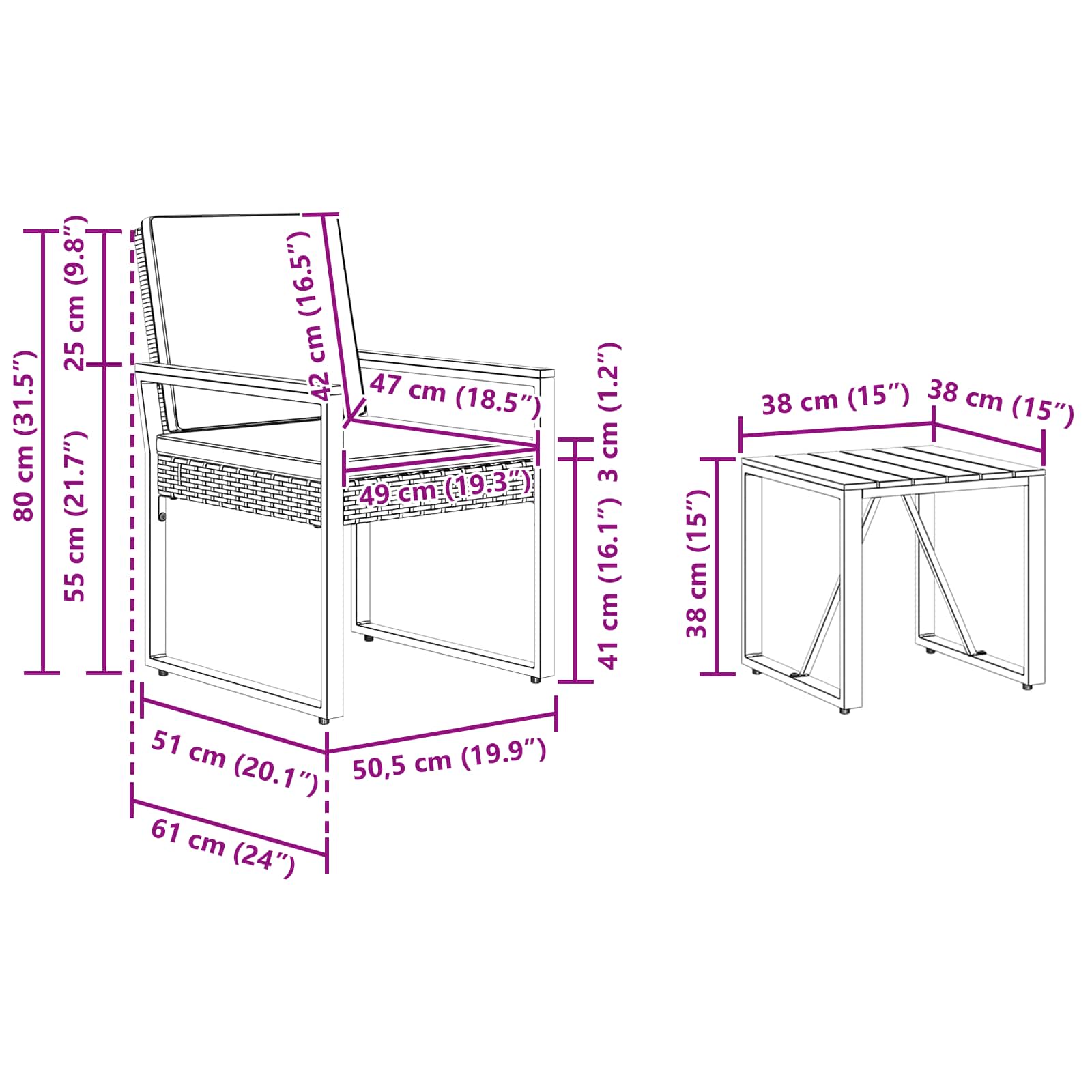 - 2 x Stol: 61 x 50,5 x 80 cm (D x Š x V)