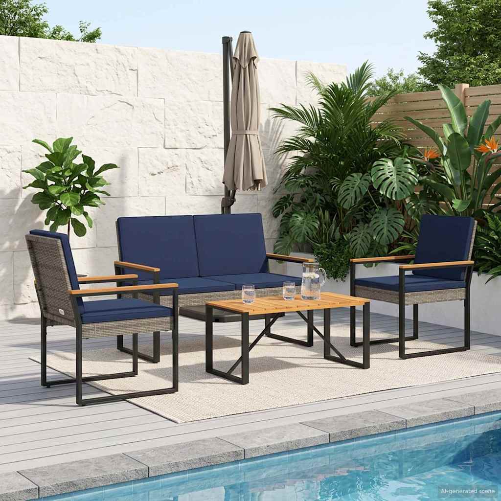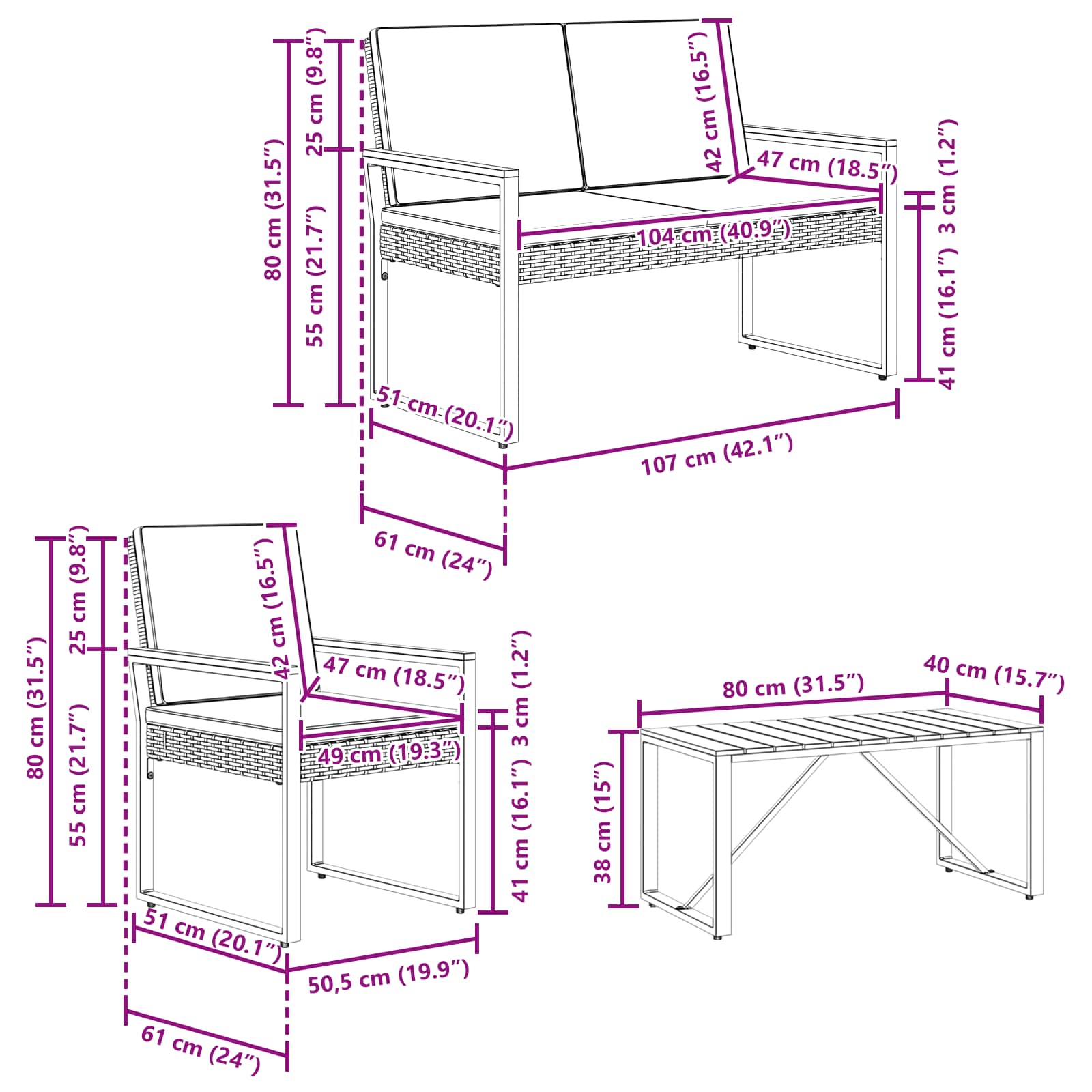 Zasnovan za dolgo obstojnost in stilski videz, ta set zunanjega pohištva združuje elegantno zasnovo in praktične značilnosti. Njegova letvasta miza natančno odvaja vodo, medtem ko prašno lakiran jekleni okvir nudi stabilnost in odpornost na različne vremenske razmere. Odstranljive blazine omogočajo udobno sedenje in enostavno vzdrževanje, kar ta set idealno naredi za sprostitev, obedovanje ali druženje na vrtu, terasi ali balkonu, ter zlahka izboljšuje videz vsakega zunanjega prostora. Material odporen na vreme: Komplet zunanjega pohištva je iz poliratana, ki daje naraven videz in se dobro ujema z zunanjimi prostori. UV-odporen in prilagojen zunanjemu okolju, bo obdržal svojo barvo in strukturo tudi pod močnim soncem in različnih vremenskih razmerah. Prašno lakiran jeklen okvir: Stoli so robustni, z prašno lakiranim jeklenim okvirjem. Ta premaz nudi zaščito pred rjo in korozijo, kar zagotavlja njihovo strukturo in stabilnost v vseh vremenskih pogojih. Letvasta akacijeva miza: Miza ima letvasto površino iz trdnega akacijevega lesa, obdelano z naravnim oljem za prijeten otip. Letvasta zasnova skrbi, da se voda hitro odvaja, kar združuje uporabnost s toplino in eleganco lesa, kar doda lepoto vašemu zunanjemu prostoru. Odstranljive blazine za sedeženje: Blazine za sedenje nudijo udobje za dolga obdobja. Prevleke so odstranljive, kar omogoča preprosto čiščenje in vzdrževanje, medtem ko mehka obloga še dodatno nudi udobje ter podpira sproščujoče uživanje na prostem. Vsestranska uporaba: Set zunanjega pohištva se lahko uporablja v različnih zunanjih okoljih, kot so vrtovi, terase, balkoni in dvorišča. Njihova elegantna zasnova in trajna konstrukcija ju naredita idealne za sproščanje, obedovanje ali druženje, dodajajo pa udobje in funkcionalnost povsod, kjer jih postavite.