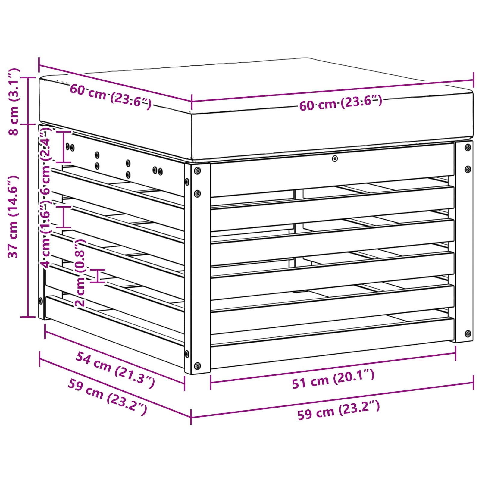 - 1 x Počivalnik: 59 x 59 x 37 cm (DxŠxV)