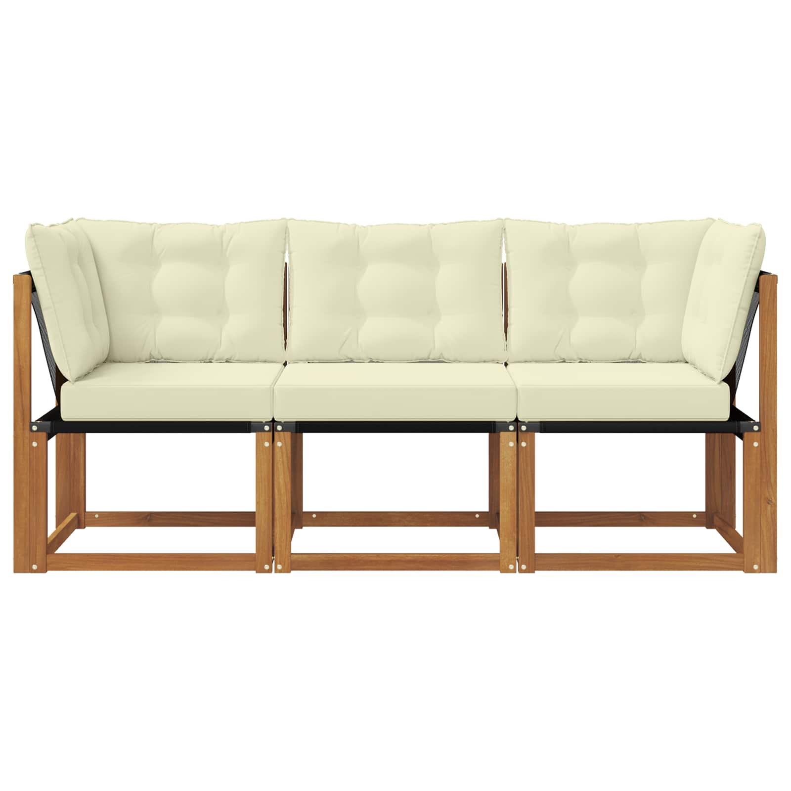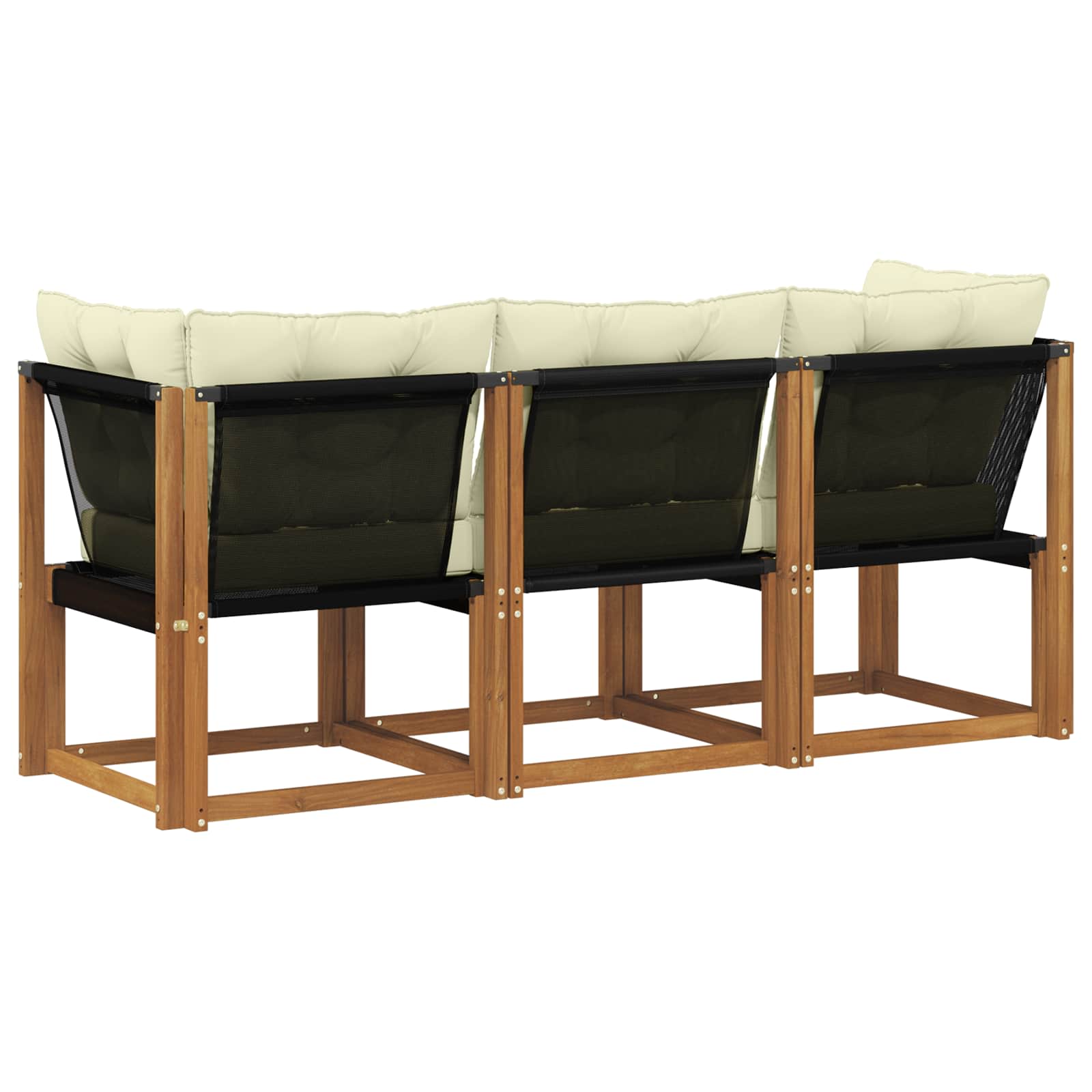 Ta set zunanjega pohištva spremenja vsak balkon, teraso ali vrt v udobno in stilno mesto za sprostitev, idealno za uživanje ali druženje na svežem zraku. S sodobnim in minimalističnim slogom ponuja raznoliko postavitev, ki se prilega različnim zunanjim prostorom. Izdelan z natančnostjo, ta set izboljšuje izgled vsakega prostora, kar omogoča trenutke miru in elegance v udobju in stilu. Trdna akacijeva lesena konstrukcija Ta kavč je narejen iz robustnega akacijevega lesa, znanega po svoji odpornosti proti vremenskim vplivom, kar nudi dolgotrajno podporo. Naravna barva lesa lepo dopolnjuje zunanjo dekoracijo, kar ga dela tako funkcionalno kot estetsko izbiro za tvojo teraso ali balkon. Udobne blazine Vsak kos ima blazine iz kvalitetnega poliestra, ki zagotavljajo udobje in dolgotrajnost. Tkanina je mehka in odporna na zunanje pogoje. Lahkotno penasto polnjenje nudi optimalno udobje, tudi med daljšim sedenjem. Modularna in fleksibilna oblika Ta set omogoča prilagodljive razporeditve, kar pomeni, da ga lahko oblikuješ po svojih željah. Ustvari perfektno postavitev, bodisi kompaktno bodisi večjo, idealno za družabna srečanja. Odpornost na vreme Zasnovano za terasne in vrtnarske prostore, pohištvo je odporen na različne vremenske pojave. Rešetkasta površina omogoča kroženje zraka in hitrejše sušenje lesa po dežju, kar ohranja udobje in trpežnost skozi čas. Odpornost barv Zasnovano, da se upira sončnim žarkom, tkanina Textilene ohranja živahne barve. Njegova trda površina se bori proti bledenju in zagotavlja dolgo zadovoljstvo, tudi v zunanjih pogojih.
