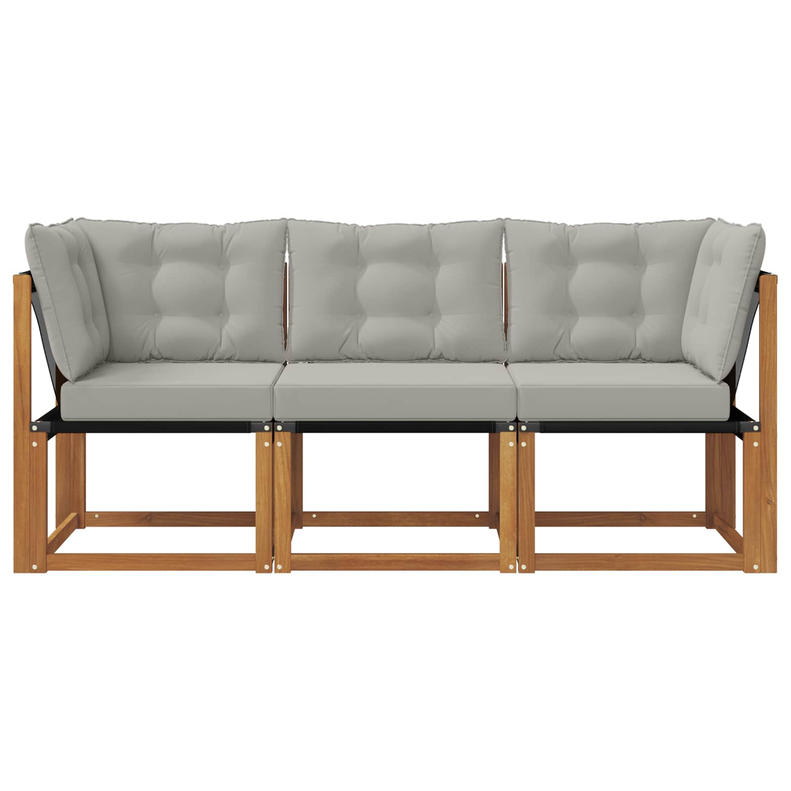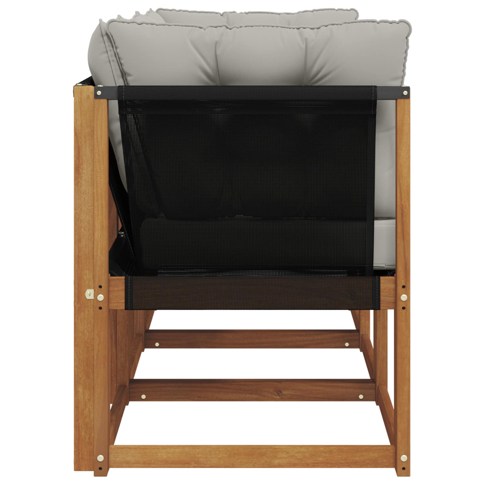 Ta set zunanjega pohištva spremenja vsak balkon, teraso ali vrt v udobno in stilno mesto za sprostitev, idealno za uživanje ali druženje na svežem zraku. S sodobnim in minimalističnim slogom ponuja raznoliko postavitev, ki se prilega različnim zunanjim prostorom. Izdelan z natančnostjo, ta set izboljšuje izgled vsakega prostora, kar omogoča trenutke miru in elegance v udobju in stilu. Trdna akacijeva lesena konstrukcija Ta kavč je narejen iz robustnega akacijevega lesa, znanega po svoji odpornosti proti vremenskim vplivom, kar nudi dolgotrajno podporo. Naravna barva lesa lepo dopolnjuje zunanjo dekoracijo, kar ga dela tako funkcionalno kot estetsko izbiro za tvojo teraso ali balkon. Udobne blazine Vsak kos ima blazine iz kvalitetnega poliestra, ki zagotavljajo udobje in dolgotrajnost. Tkanina je mehka in odporna na zunanje pogoje. Lahkotno penasto polnjenje nudi optimalno udobje, tudi med daljšim sedenjem. Modularna in fleksibilna oblika Ta set omogoča prilagodljive razporeditve, kar pomeni, da ga lahko oblikuješ po svojih željah. Ustvari perfektno postavitev, bodisi kompaktno bodisi večjo, idealno za družabna srečanja. Odpornost na vreme Zasnovano za terasne in vrtnarske prostore, pohištvo je odporen na različne vremenske pojave. Rešetkasta površina omogoča kroženje zraka in hitrejše sušenje lesa po dežju, kar ohranja udobje in trpežnost skozi čas. Odpornost barv Zasnovano, da se upira sončnim žarkom, tkanina Textilene ohranja živahne barve. Njegova trda površina se bori proti bledenju in zagotavlja dolgo zadovoljstvo, tudi v zunanjih pogojih.