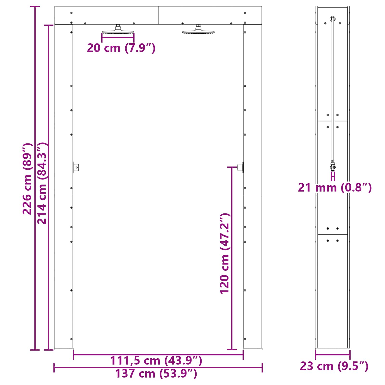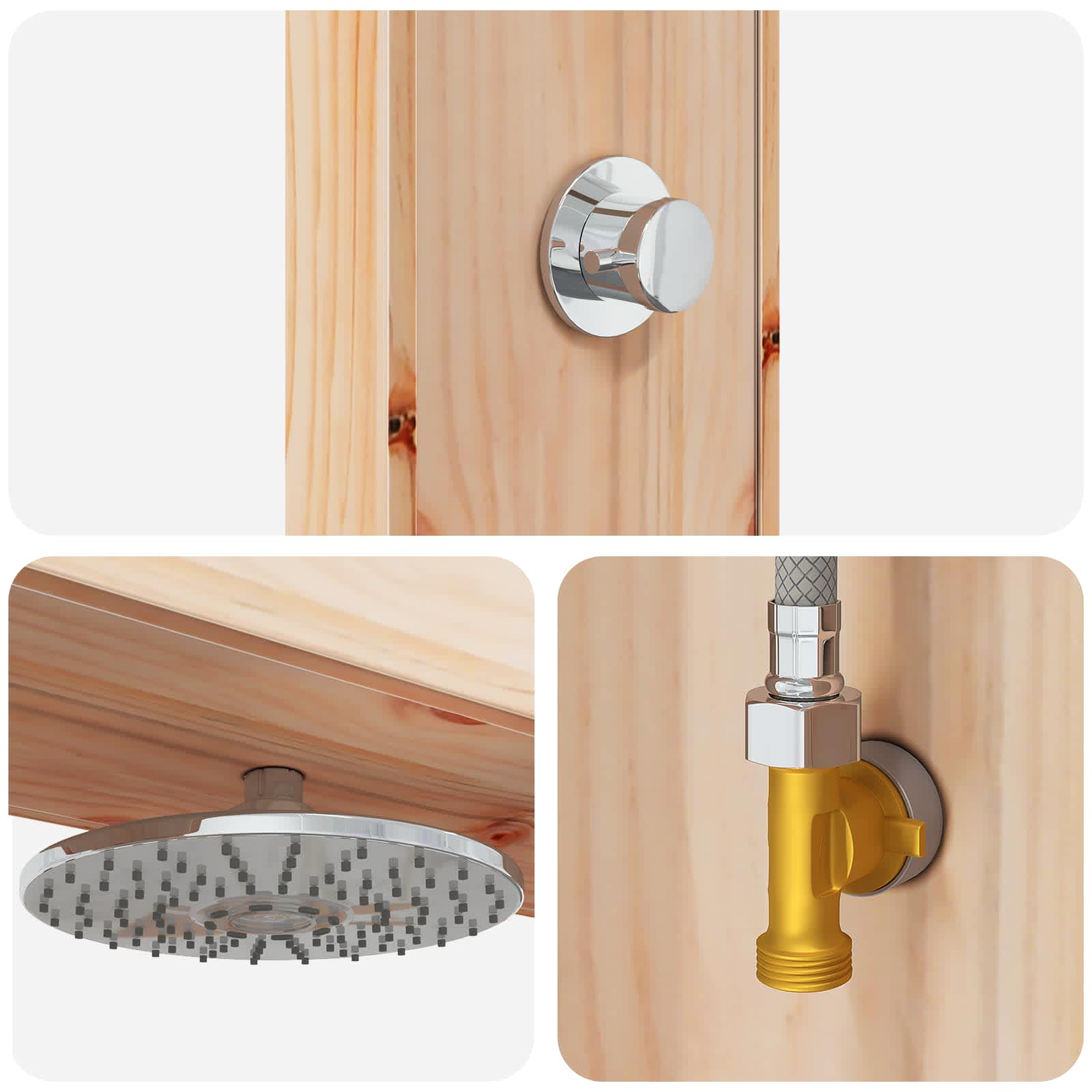 Ta zunanja prha doda pridih elegance vsakemu vrtu ali terasi, saj združuje moderno estetiko s funkcionalnostjo ter ustvarja osvežujočo izkušnjo kopanja na prostem. Njena elegantna zasnova prikazuje preprostost in praktičnost, kar jo naredi perfektno za sodoben zunanji prostor, kjer so pomembne tako vizualna privlačnost kot uporabnost. Zaradi kompaktne velikosti je ta prha idealna za bazene ali ležalnike, kar omogoča brezskrbno uživanje na svežem zraku in hiter tuš po dolgem dnevu na soncu. Odporna na vreme: Narejena iz materialov, zasnovanih za varovanje pred soncem, dežjem in drugimi zunanjimi dejavniki. Struktura vzdrži elemente, kar zagotavlja dolgoročno trajnost brez žrtvovanja zmogljivosti ali videza. Odlična izbira za vsak zunanji prostor, nudi leta zanesljive uporabe. Trdna gradnja: Stabilna in vzdržljiva zasnova te zunanje prhe z robustno konstrukcijo trdno stoji proti elementom. Dolga življenjska doba zagotavlja zanesljive storitve vaši družini brez pogostega vzdrževanja. Odpornost proti rji in koroziji: Opremljena s jekleno konstrukcijo, ki je zaščitena, ta prha je idealna za zunanjo uporabo. Njen odpornosti ne zgolj podaljša življenjsko dobo, temveč ohranja tudi lep videz brez madežev. Učinkovita raba prostora: Kompaktne mere omogočajo koristno rabo prostora, ne da bi bilo potrebno žrtvovati udobje ob prhanju. Ta pametna zasnova omogoča uživanje v zunanjem kopanju, ne da bi se skrbi, da bi vzela preveč prostora na vrtu ali terasi, kar jo dela prav idealno opremo. Nega in vzdrževanje: Enostavno čiščenje in ohranjanje vaše prhe brez težav, preprosto sledite navodilom in se izogibajte močnim kemikalijam. Uporaba zaščitnega pokrova, ko prha ni v uporabi, podaljšuje življenjsko dobo ter ohranja videz tudi v spremenljivih vremenskih razmerah.