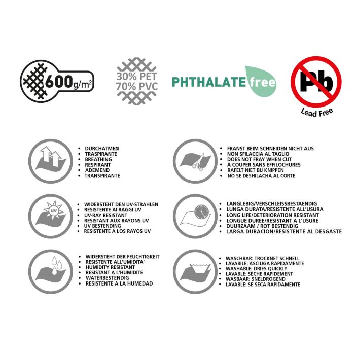 Visokokakovostna preproga za tende, popolnoma primerna za potovanja ali stalno kampiranje. Enostavna za kombiniranje s senčniki za prikolice in avtodome, rolo senčniki, senčniki in senčniki za avtodome. Izdelana iz sintetičnih vlaken, odpornih na UV žarke. Uporabna obojestransko. Vodotesna, odporna proti gnitju in enostavna za čiščenje. Lahko razrežete na želeno velikost brez nevarnosti, da bi se strgala.