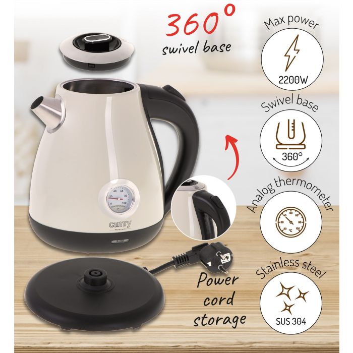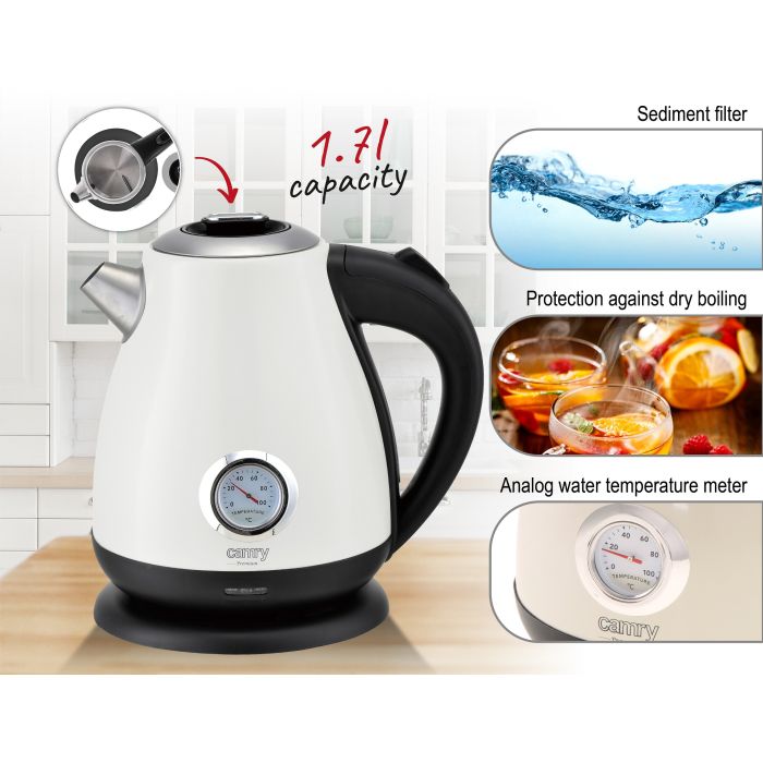 Camry Električni grelnik vode bel s termometrom 1,7L 2200W CRCR1344W