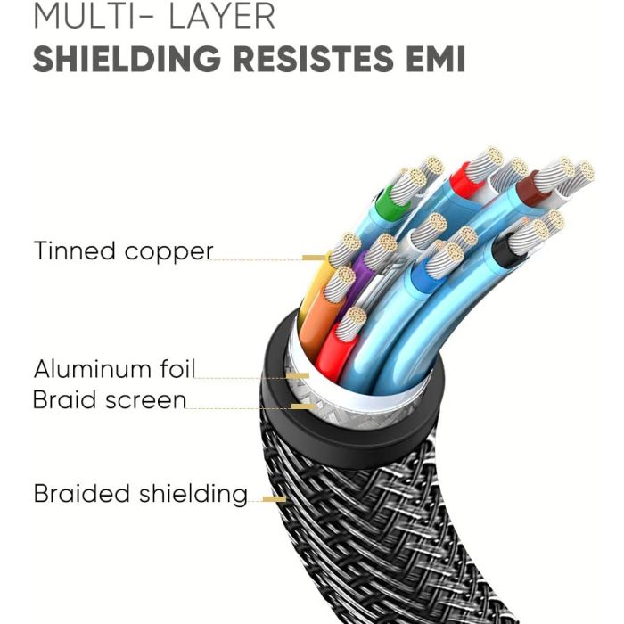 Trojna zaščita učinkovito ščiti pred motnjami EMI in zagotavlja čistost digitalnega signala.